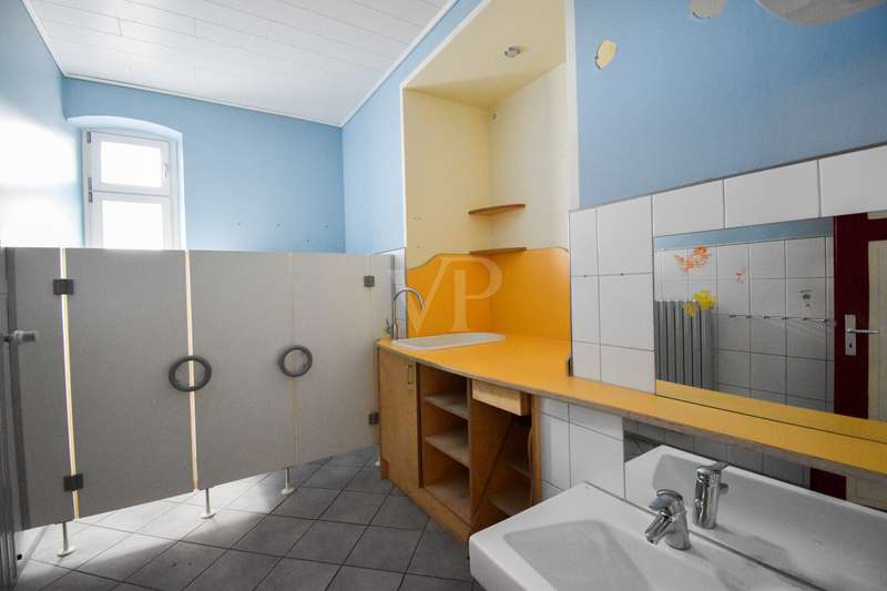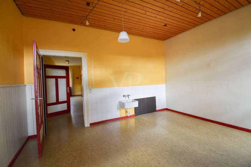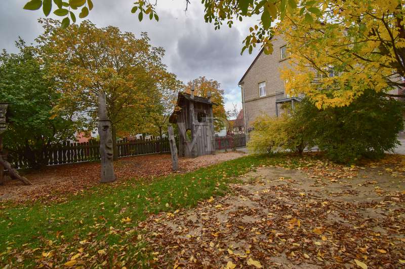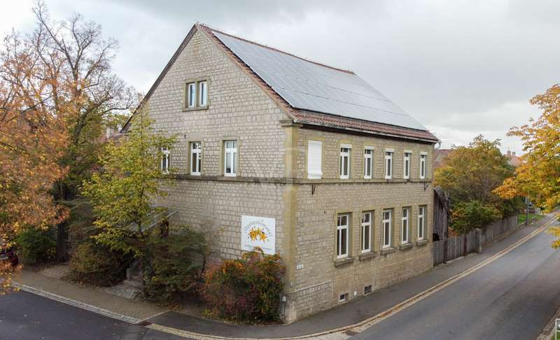 Charming apartment building in Hüttenheim An attractive property with history is for sale: built around 1900, the former school building in a central location in Hüttenheim was used as a Protestant kindergarten for many years and now offers a wide range of possibilities for conversion and redesign. With a generous living space of around 247 square meters in the main house, an additional usable area of around 95 square meters in the outbuilding and a total plot of 963 square meters, this is an ideal property for families, investors or anyone who wants to combine the charm of historic buildings with individual scope for design. The main building impresses with its solid construction, high ceilings and bright rooms that create a friendly living atmosphere. It has a total of seven rooms, which can be used flexibly as living rooms, bedrooms or offices. There are already connections for kitchens and bathrooms on both the first floor and the upper floor, meaning that the house can easily be divided into two residential units. The large attic also offers plenty of storage space and has additional potential for expansion. The ensemble is complemented by a small outbuilding with around 95 square meters of usable space. The creation of a separate 1-bedroom apartment is also conceivable here, meaning that a total of three residential units could be created. The property has an oil-fired central heating system that supplies both the main building and the outbuilding. Hot water is currently provided by electric boilers. In addition, a photovoltaic system with an output of 10 kWp was installed in 2005, which contributes to energy efficiency and potential feed-in income. The spacious garden and outdoor area invite you to relax and offer plenty of space for leisure, horticulture or individual design. A particular advantage is that the building is not a listed building, which makes conversion and renovation work easier. The former school building therefore offers a rare opportunity to combine a piece of history with modern living. Whether as a multi-family home, a multi-generational project or as a capital investment - this property impresses with its charm, versatile usage potential and freedom of conversion.