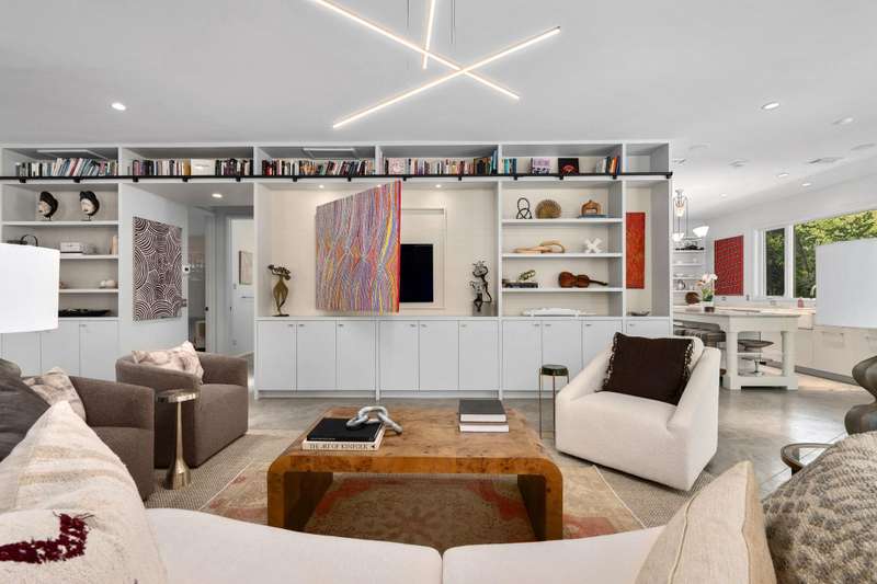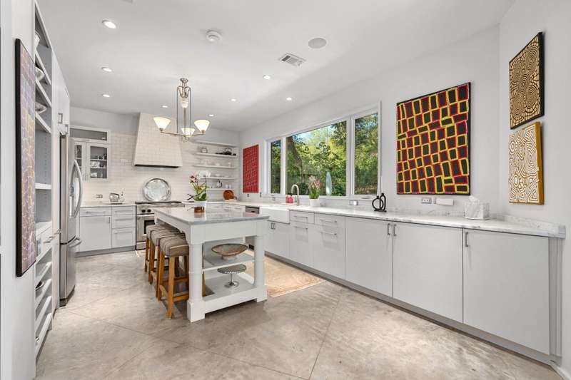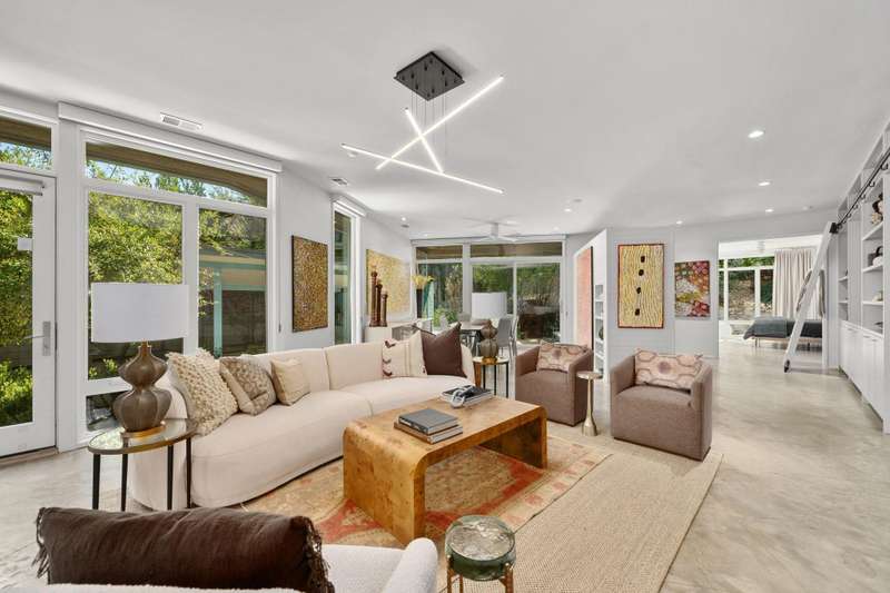 Perfect for entertaining, the living and dining spaces open to an expansive patio and serene backyard space. Multiple outdoor living areas, a terrace, and space for an outdoor kitchen invite effortless gatherings and peaceful retreat alike.