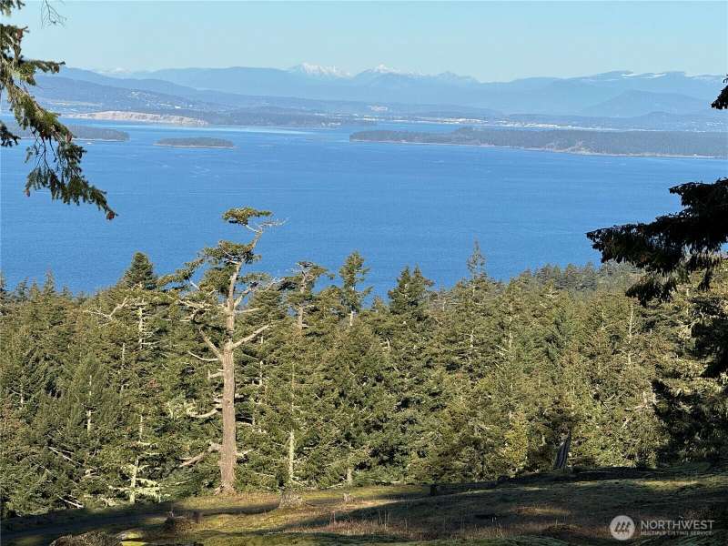 Magnificent westerly views on a dream building site await atop Mt. Dallas. This 9.78-acre parcel offers San Juan Island’s finest sunsets that paint the skies from the  Olympic range, to Victoria’s twinkling lights, and beyond to the northern Gulf Islands. The vast sunsets melt into starlit skies while ships glide silently below. This rare offering is fully prepared: 2 private wells w/water system , 5BR septic drain field, paved road, 4KW power, phone, high-speed internet & fiber conduit—all installed. Survey & geotech complete. Two soulful cabins—a driftwood-crafted retreat and a rebuilt blacksmith shop—offer fun accommodations while you build your dream home.