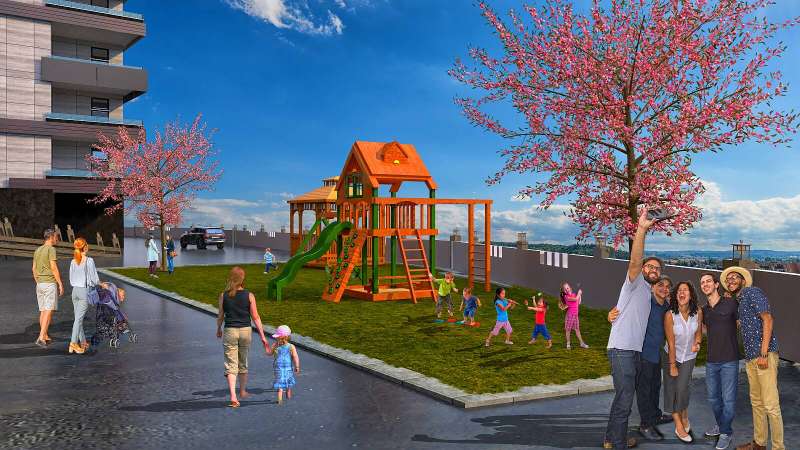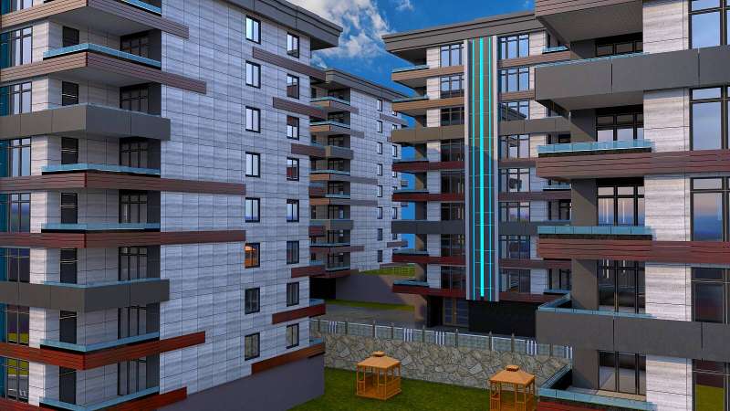 The apartments for sale in Trabzon are in a project consisting of 8 blocks and 103 apartments. The complex has indoor parking, 24/7 camera security, a children's playground, a basketball court, elevators, a prayer room, and a walking track. The project aims to offer a family-friendly life with on-site amenities and design.