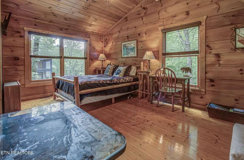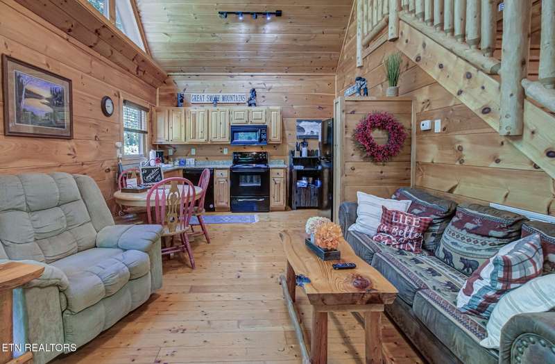This charming cabin, nestled between Gatlinburg and Pigeon Forge, offers the best of both worlds-easy access to Dollywood, the Great Smoky Mountains National Park, and numerous area attractions, all in a peaceful, private setting. With over 107 reviews on Airbnb, a stellar 4.8-star rating, and over $45,000 in gross revenue for 2024, this property has already proven to be a guest favorite and a successful income generator. Perfect for a honeymoon or a small family, the cabin features a cozy one-bedroom layout with a spacious loft. The new back deck and private hot tub offer a serene space to unwind, while the backyard firepit is perfect for evenings under the stars. Inside, large A-frame windows flood the space with natural light, and the fully stocked kitchen with granite countertops makes meal prep a breeze.