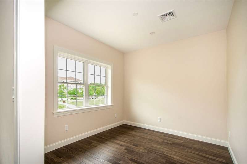 Welcome to this stunning new construction condo, offering two levels of thoughtfully designed living space. Combining modern luxury with everyday comfort, this home features an open-concept layout, high-end finishes, and rich hardwood floors throughout. The bright, white kitchen is a standout, showcasing quartz countertops, stainless steel appliances, and abundant cabinetry. The spacious living area centers around a gas fireplace with stylish shiplap detailing perfect for both relaxing and entertaining. A main-level bedroom offers flexible living arrangements, while the upper level includes a serene primary suite, a dedicated home office, and a cozy sitting area ideal for reading or unwinding. Spa-inspired bathrooms feature designer tile and sleek glass showers for a touch of everyday luxury. Conveniently located near major highways and a vibrant shopping center filled with dining and entertainment options.