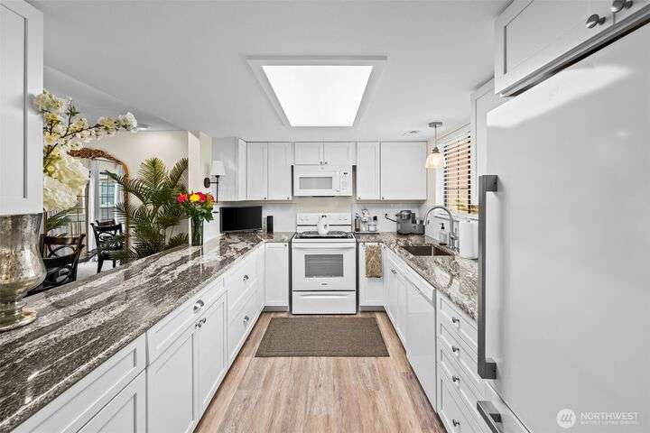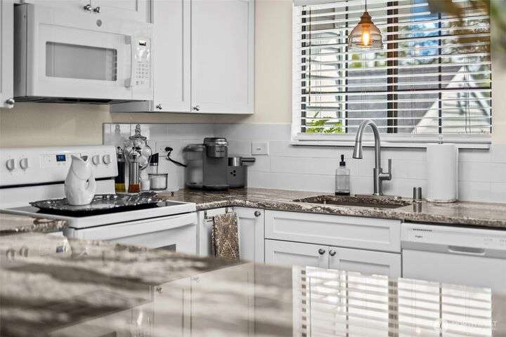 Perched above street level, this beautiful Narrows Reach condo offers style and comfort throughout. Enjoy granite countertops, updated appliances, and attractive white cabinetry. The resurfaced decks and new furnace with heat pump offer year-round ease. The living room features vaulted ceilings and a fireplace. Relax in the generous primary suite with a private deck, walk-in closet, and private bath with new quartz counters. Ample storage. Attached 2-car garage. Close to Point Defiance, Westgate shopping and Vassault Park! All furniture is negotiable.