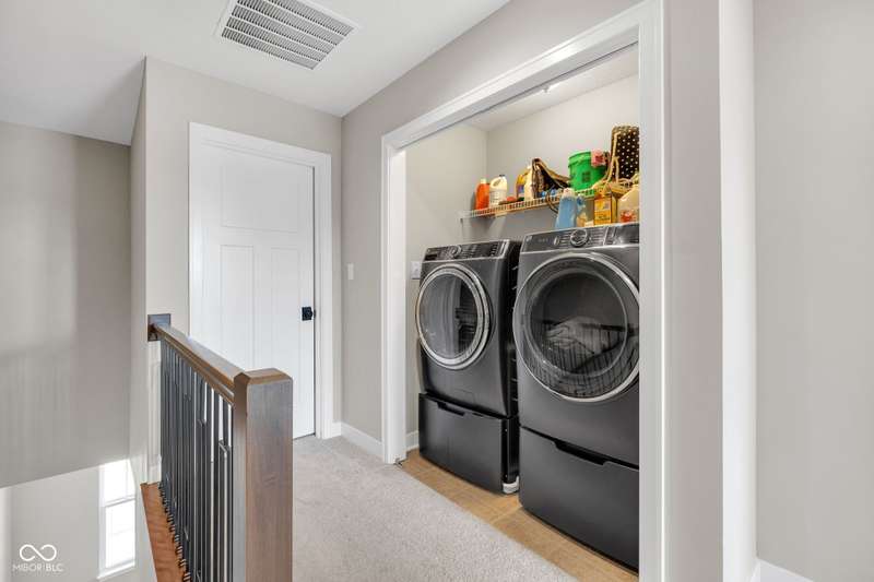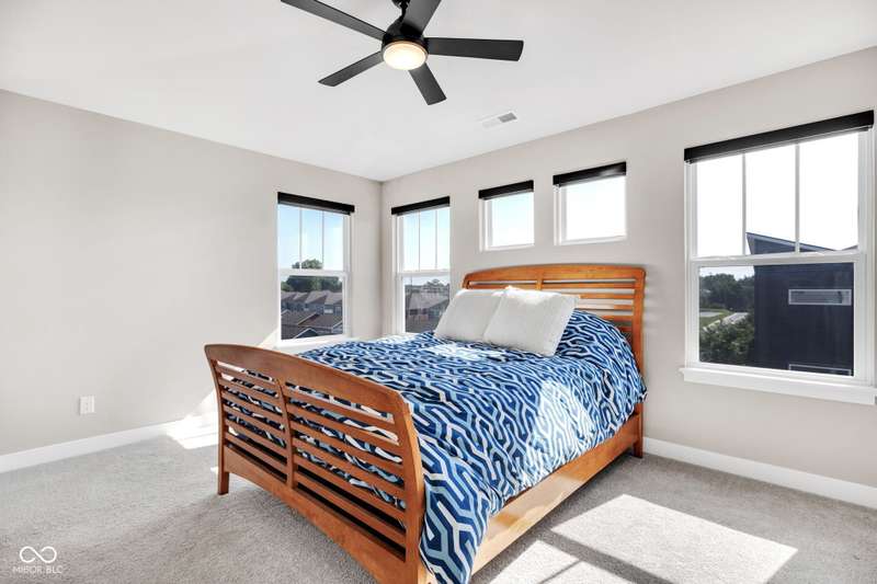 Enjoy every updated finish in this end-unit Central State townhome! The chef's kitchen features a waterfall kitchen island with stylish lighting and backsplash as well as a Culligan reverse osmosis water filtration system. Enjoy your morning coffee on the second-floor patio before heading out for a short work commute to downtown Indy or use the spacious first floor bedroom as a home office. Step out your front door to walk over to 6 acres of green space at "The Grove" or exercise at Central Green Sports Field on the soccer fields or running track. This like-new townhome perfectly blends modern conveniences with the historical charm of Central State's campus. Please inquire about furnished rental price in this design-forward townhome.