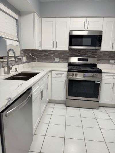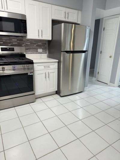 Beautiful 1st Floor Unit Newly Rehabbed 8/2025. Everything is New. Large Rooms and 6 Large Closets. 2 Bedrooms, 2 Baths, Living Room and Dining Room Combined, Eat-In Kitchen with All New Appliances, Granite Counters, and Breakfast Bar, Full Size Washer & Dryer in Laundry Room with Cabinets and Counter, Big Parking Space and Front Patio. Approximately 1200 Sq Ft. Heat, Gas, Spacious Storage Room, and 1 Parking Space Included in Rent. Plenty of street parking for additional car. This is a Must See!
