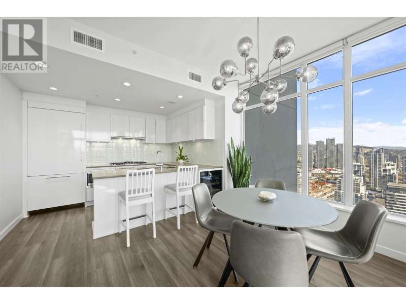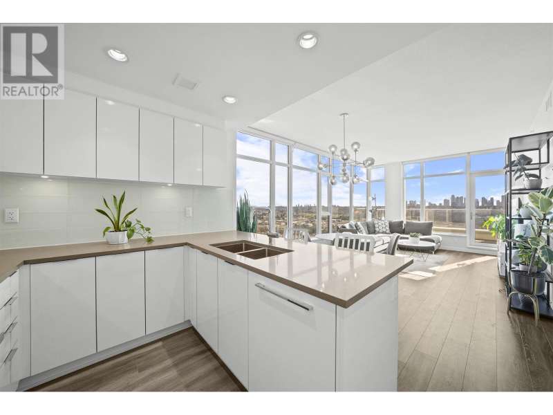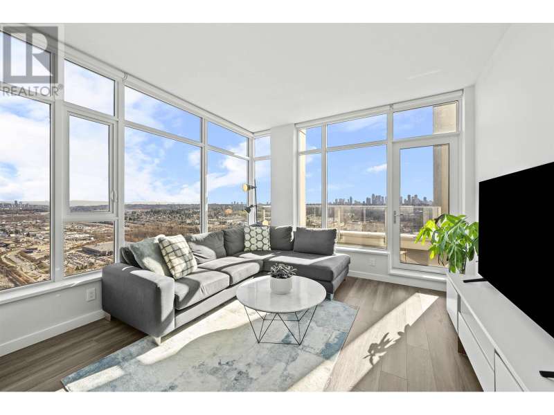 Welcome to "Fulton House" by Polygon, this 2 Bed, 2 Bath & Den CORNER PENTHOUSE boasts a 338SF wrap-around balcony capturing 270-degree views of breathtaking panoramic views of the mountains and city. Floor to ceiling windows floods the unit with natural light, and the open-concept layout features a sleek modern kitchen with a large island, Miele appliances, and a wine fridge. Electric blinds provide convenience and only 1 of 5 units in the building to have CENTRAL air conditioning. Fulton House amenities include a fitness centre, yoga studio, outdoor pool, hot tub, sauna, and lounge. Steps to SkyTrain, Brentwood Mall, dining, and more. Side by side EV parking + large private storage room. Don't miss this opportunity to own one of the most UNIQUE PENTHOUSE in the Brentwood corridor. (id:58403)