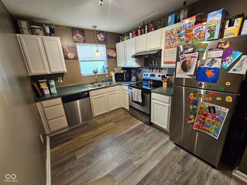Welcome to this beautifully updated 4-bedroom, 2-bath ranch in the desirable Meadows at Simon Farms neighborhood! You'll love the large covered front porch that invites you into an open, airy floorplan with vaulted ceilings and stylish LVP flooring throughout (primary bedroom carpeted). The spacious living room flows seamlessly into the kitchen, which features stainless steel appliances and plenty of cabinet space. The private primary suite includes a full en-suite bath and a walk-in closet. Enjoy outdoor living in the privacy-fenced backyard complete with a deck and hot tub-perfect for relaxing or entertaining. Additional highlights include a 2-car attached garage, newer roof, siding, and HVAC. Ideally located near schools, shopping, I-65, and US-31. Move-in ready and waiting for you!