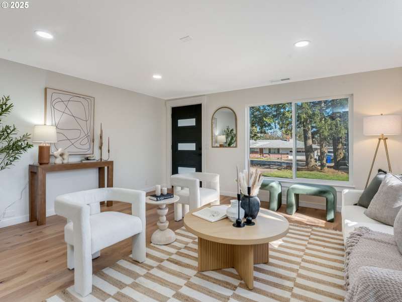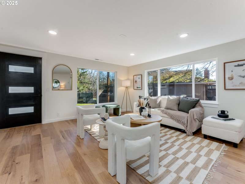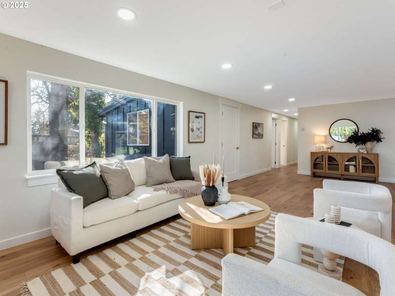 This fully reimagined mid-century modern home has been taken down to the studs and thoughtfully rebuilt to blend timeless design with modern functionality. Nestled on a spacious lot, this 4-bedroom, 3-bathroom single level home boasts an open floor plan flooded with natural light, perfect for both everyday living and entertaining. Gleaming hardwood floors flow throughout, complementing the sleek finishes and clean architectural lines. The oversized garage is a standout feature—offering possibilities as a workshop, extra storage, or a potential ADU conversion! Don't miss this rare opportunity to own a fully updated mid-century modern gem with space, style, and versatility. Call for a private showing today.