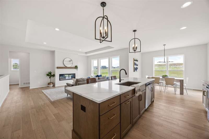 MOVE-IN READY! Are you looking for a ranch floor plan with 4 bedrooms on the main level? This home might just be for you! This home features 9' ceilings, 10' trey ceiling in the great room, white painted trim, quartz countertops, soft close cabinetry, walk in pantry, and a primary suite with large walk in closet and dual sinks. This property will also include a fully sodded yard and landscaping. The basement can be finished with an additional bedroom, rec room and bathroom for $40,340. Contact agent to learn more or to inquire about building timeline. Sellers would consider a trade on this home. 10-Year builder warranty included.