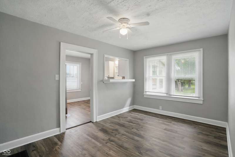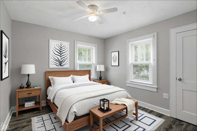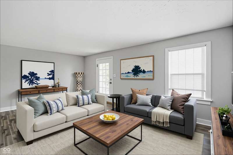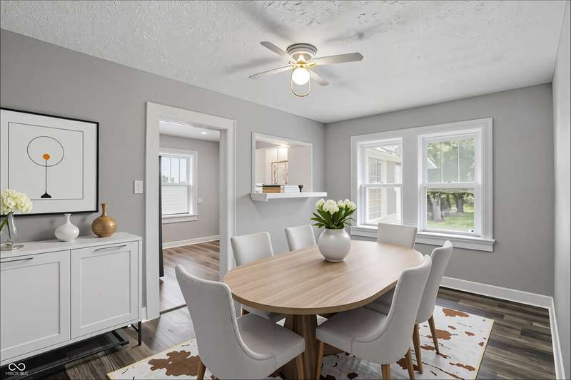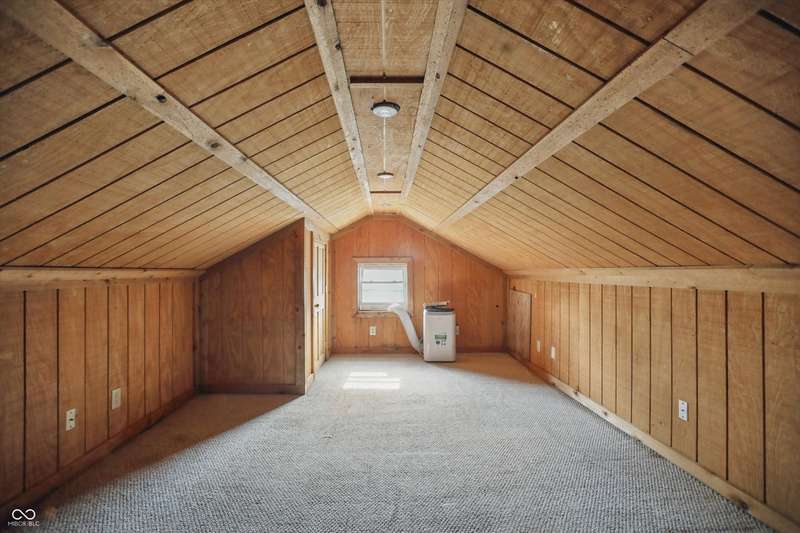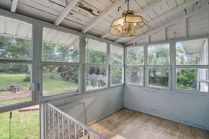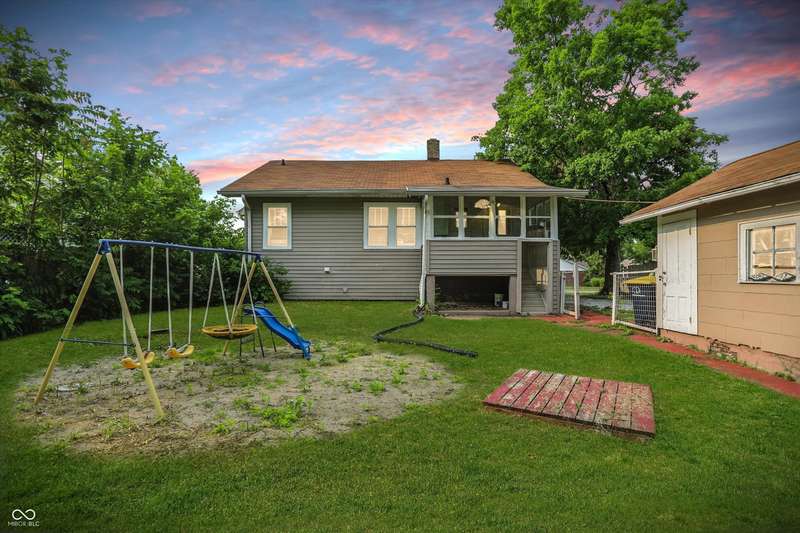 Charming Beech Grove bungalow on a rare half-acre lot, loaded with potential! This 2-bedroom home features updated laminate wood-style flooring, a refreshed kitchen with white cabinetry and black countertops, and a stylish main-level bathroom. The finished attic adds valuable flex space, perfect for a home office. Downstairs, the basement includes a half bath and plenty of storage options. But the real gem is outside: a spacious 0.54-acre lot with mature trees, a playset, a detached garage, and an enclosed sunroom overlooking the backyard. Whether you're a homeowner looking for space or an investor exploring room to expand, add value, or reimagine the lot-this property delivers versatility and opportunity. Conveniently located near parks, schools, and downtown Beech Grove. Please note: Some photos have been virtually staged to help illustrate the potential of the home's spaces.