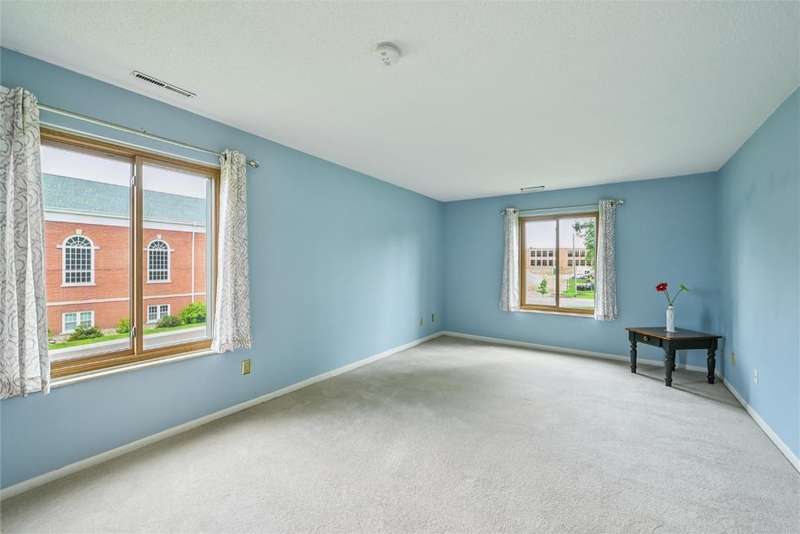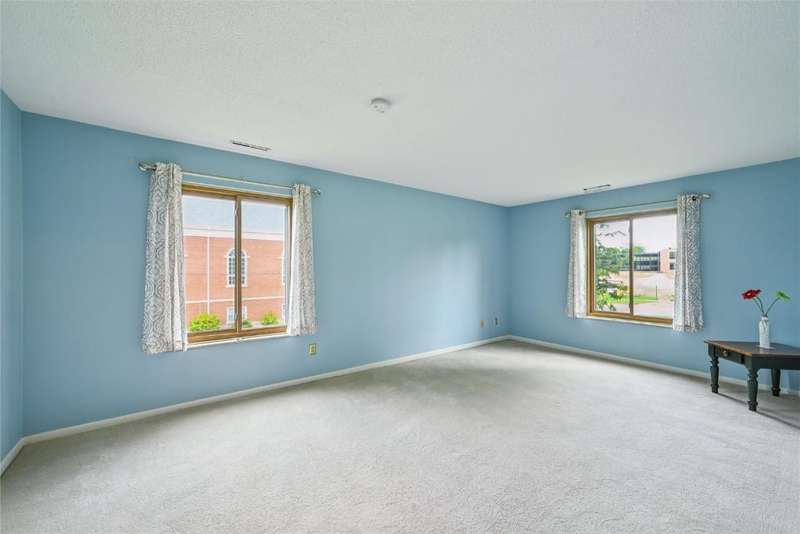Enjoy the friendly small community in this building! Move in ready with newer curtains, door handles, digital thermostat, windows, faucets, carpet, furnace humidifier, waterproof deck, stainless steel Refrigerator and Stove. On bus route, heated garage, personal storage room, quiet and secure building with elevator, newer roof, remodeled lobby and corridors, monthly fee includes snow removal, lawn, water, trash, internet and Imon cable TV, spacious master with private bath, walk in closet, two windows for cross ventilation, Large patio with grill on East side available as a common area! great life style choice!