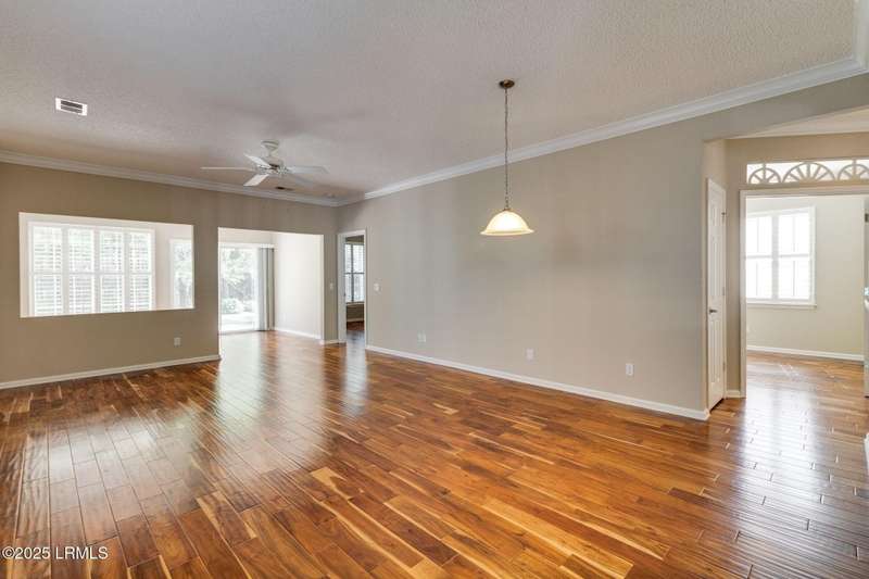 Welcome home to this charming 3 bedroom, 2 bathroom Heather model nestled on a wooded homesite with a deep backyard in the heart of Sun City's tranquil South campus. The inviting interior features rich wood floors throughout the main living areas, an expansive Carolina room, stainless steel appliances, and crisp white kitchen cabinets for a fresh, modern ambiance. Perfectly positioned close to the Hidden Cypress Amenity Center-which boasts a resort-style pool, fitness center, Jamison's restaurant, and the Hidden Cypress Golf Course-you'll also enjoy quick access to the softball fields, pickleball courts, woodworkers shop, and dog park near 80 Biltmore. This home blends relaxed Lowcountry comfort with resort-style living!