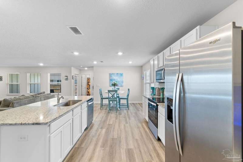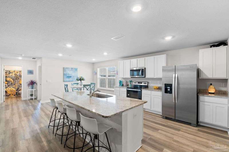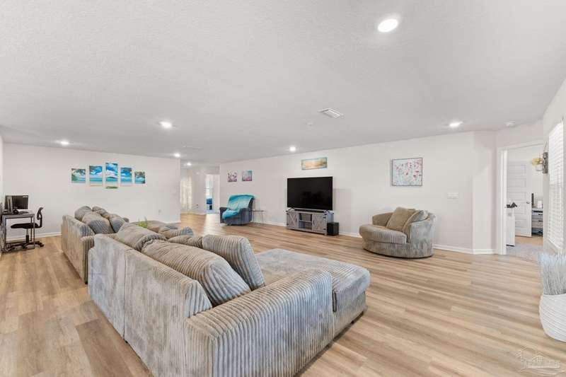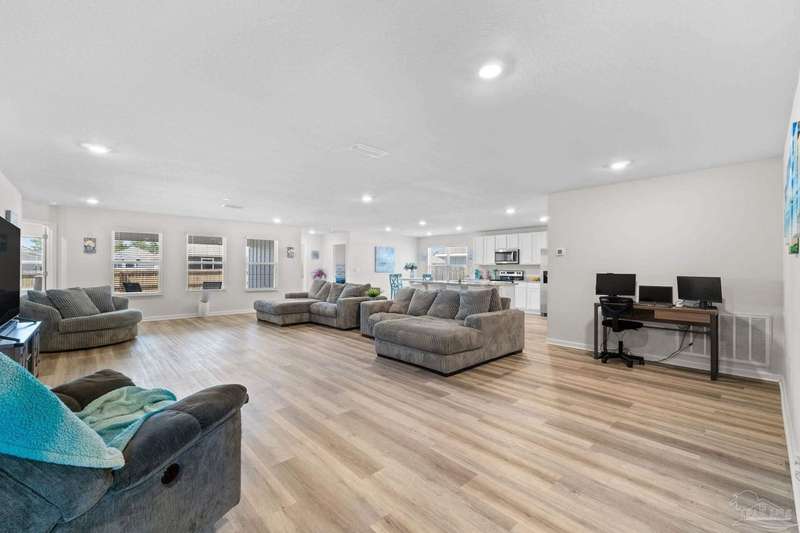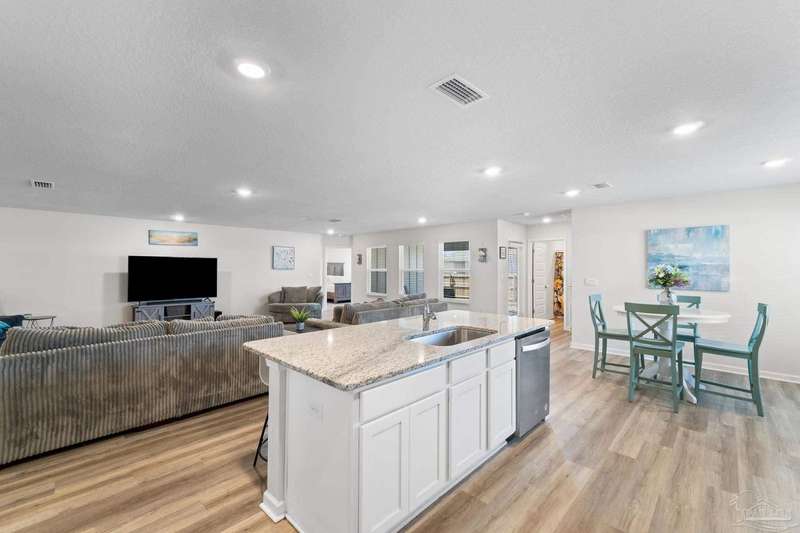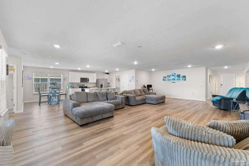 Welcome to the friendly community of the Preserve at Deer Run where residents have year-round access to Florida living with the community pool and pavilion. This versatile 5 bedroom floorplan offers generous living space centered around the heart of the home - the beautiful kitchen and great room! Gleaming granite counters shine in the kitchen and baths, while low-maintenance LVP flooring complements the main kitchen/living areas. The huge great room can be configured with two dining spaces, or dining and a separate office area - adjust to your family's needs! Dedicated pantry space and laundry room are conveniently right off the kitchen with ample storage. The primary bedroom and bath are a peaceful sanctuary, with large walk in closet, double vanity, and spacious shower. The additional bedrooms spaced as spokes off the living area offer privacy and generous closets. Enjoy all that NW Florida has to offer with convenience to shopping, I-10, Navy Federal, and of course the beaches, as well as ease of the community pool and grilling area. Don't wait - request your tour today!