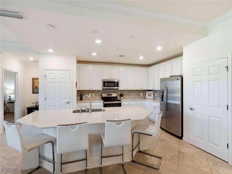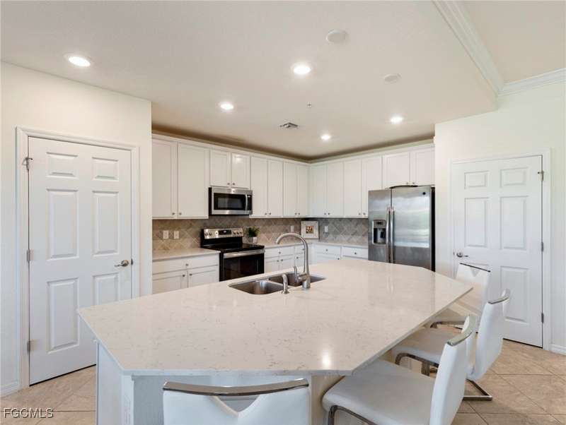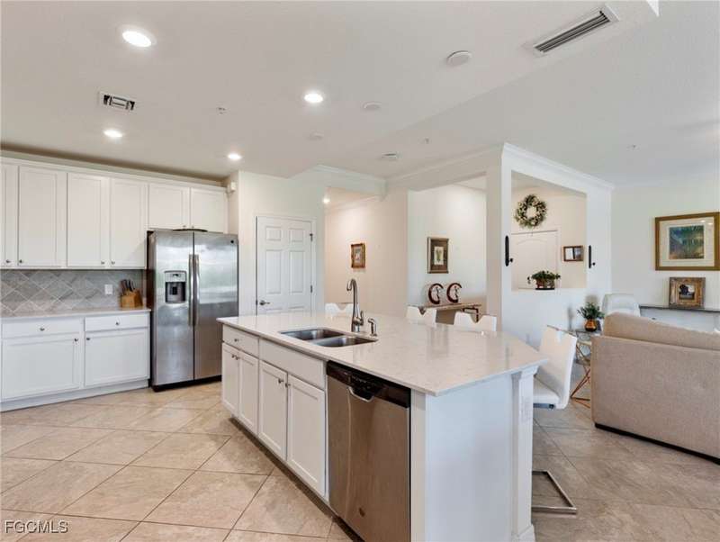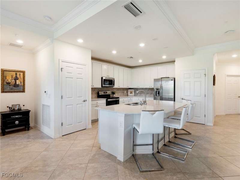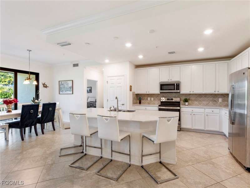 Now available - 1st floor coach home with nearly 1,700 s/f of living space in the amazing amenity rich community of Arborwood Preserve. Open, bright, spacious, and well lit, this two bedroom + den "Bella Casa" model has tile and wood floors that flow throughout the home. The split bedrooms offer the freedom of privacy with a den flex room offering options for an office or media room. The kitchen is open and spacious with a center island, white cabinetry, quartz counter tops, stainless steel appliances, and an abundance of counter and storage space. Volume ceilings and crown molding add elegance. Outside, the expansive lanai with lush landscaping is sure to become a place for tranquility. Impact glass provides comfort, quietness, and protection. Hot Water Heater is 2025. One car garage. Just steps from the stellar amenities of Arborwood Preserve which include a resort style pool, bar, restaurant & fire pit, bocce, fitness, tennis and pickleball, theater room and so much more. Close to fine dining, world class shopping, pristine sandy beaches, Major League Baseball, and the SWFL International Airport. Furnishings are negotiable. You are now HOME!