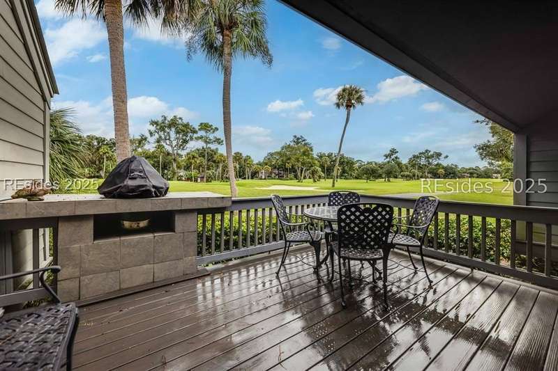 Impeccably maintained 3BR/3BA Turnberry Village villa, offered fully furnished and ready to enjoy. Nestled along the golf course, this villa showcases high-end finishes including solid black walnut hardwood flooring, Wolf appliances (oven, cooktop, microwave, wine cooler), and Whirlpool washer/dryer. Entertain with ease on the spacious patio featuring a Big Green Egg grill and sweeping fairway views. Palmetto Dunes owners enjoy world-class amenities: golf, tennis, pickleball, biking, and miles of beach access. A rare blend of luxury, convenience, and Lowcountry lifestyle.