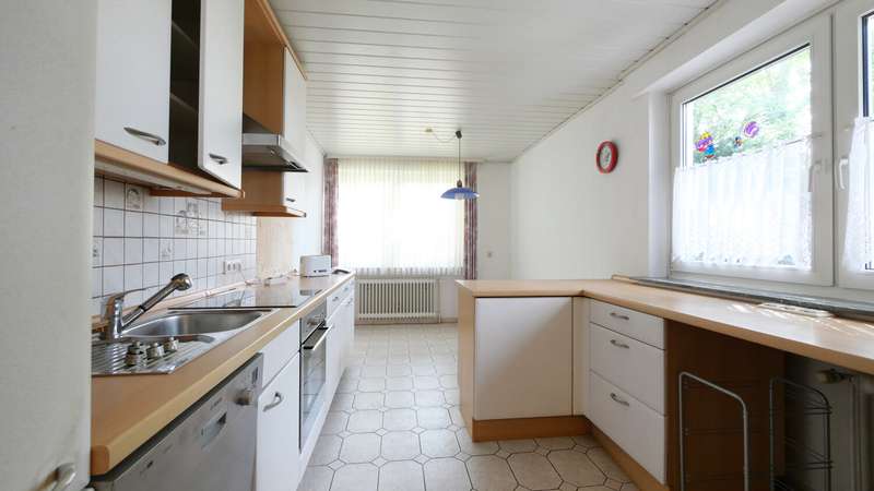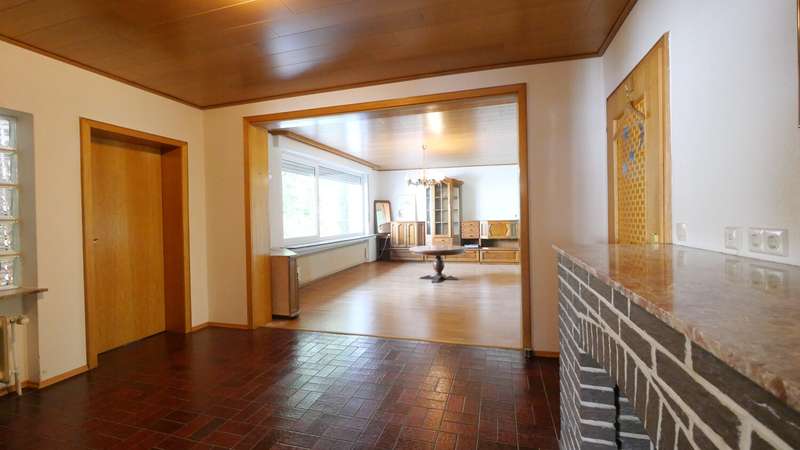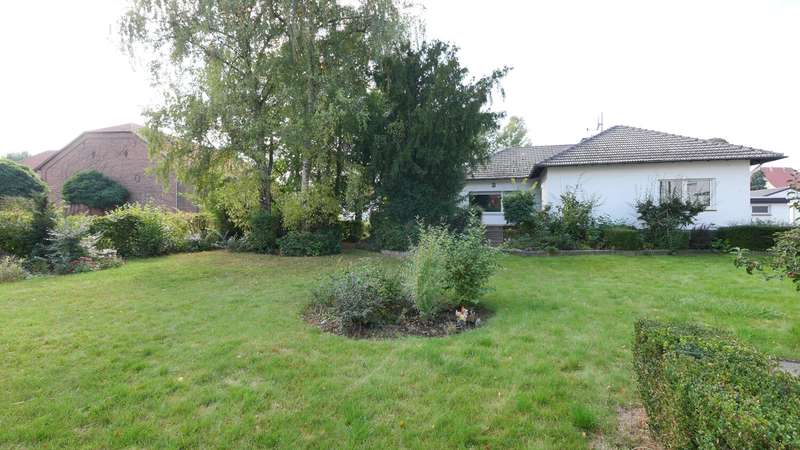 This bungalow from 1973 is situated on a plot of around 1,000 m² with well-kept mature trees and offers plenty of space for families, couples or anyone who appreciates living on one level with lots of space and comfort. The spacious kitchen offers enough space for a dining table and impresses with an existing fitted kitchen. A possible entrance leads directly into the adjoining living room - ideal for an open, communicative design of the living area. The bright living room also offers a beautiful view of the terrace and the spacious garden, which invites you to relax and linger. With three well-designed bedrooms and an additional connecting room, there are flexible options for use - whether as a study, guest room or dressing room. The bathroom is equipped with a shower and bathtub and offers natural light. The house has a full basement. There are several rooms here, some of which can be heated, a large party cellar with a bar - perfect for sociable evenings - as well as other practical usable areas. The gas heating was modernized in 2019. The offer is rounded off by a double garage and the spacious garden with mature trees - a home with many possibilities in a quiet, mature residential area.