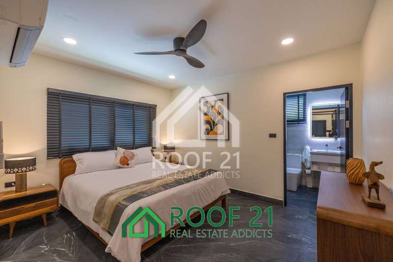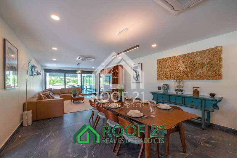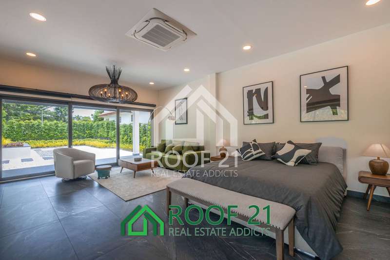 This beautifully designed pool villa is located in a quiet cul-de-sac just minutes from Mabprachan Lake and Horseshoe Point. Built by PIANGPOR Architects (2009), the home offers space, quality, and privacy—ideal for families or buyers looking for high-end living near international schools and golf courses.
