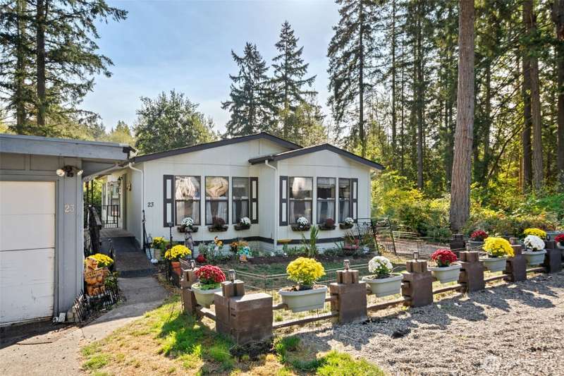 Charming 3-bedroom, 1.75-bath, 1,110 sq ft home in Gatewood Manor, a 55+ community on Mile Hill Drive. Enjoy a freestanding propane stove, newer flooring, and covered decks for year-round comfort. Space rent includes a single-car garage, water, septic, and garbage. Park approval required; one pet allowed with approval. A wonderful opportunity for low-maintenance living in a convenient Port Orchard location!
