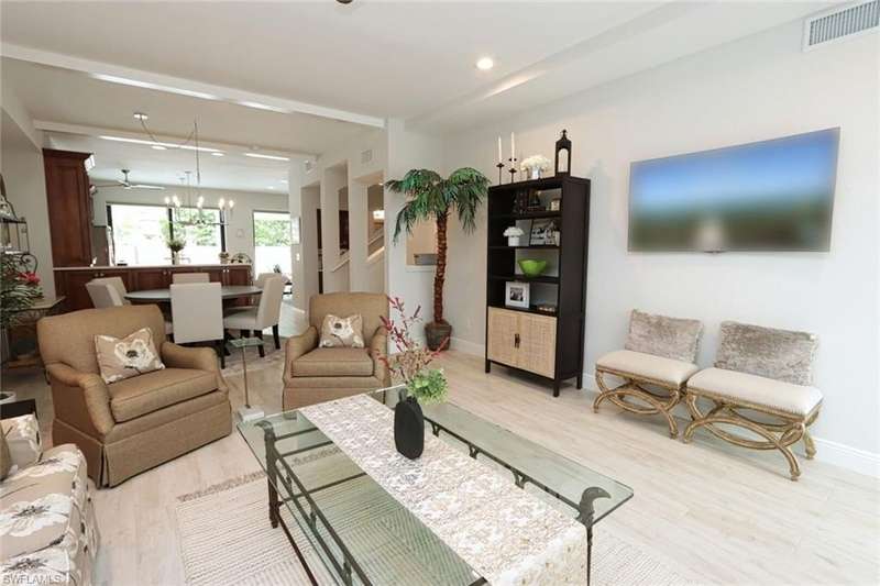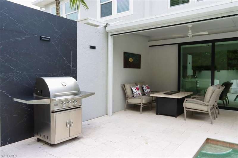 OPEN FOR 2026 Season!! Book EARLY!! OPEN FOR Summer and Fall too! This completely updated 3 bedroom/3+ bath residence offers everything one thinks of in Olde Naples: Central location, Walk to the pristine beaches, Naples' fishing pier, restaurants/shopping. This 2-story Villa sleeps six; it is spacious, well furnished, well equipped, and offers one a very comfortable place to stay in Olde Naples. Enjoy entertaining and relaxing on the Lanai, with a private heated pool, dining, lounge chairs, and gas BBQ grill. The Kitchen has rich wood cabinetry, granite counter-tops and island, stainless appliances, including gas stove/oven, dishwasher, microwave and refrigerator/freezer, coffee maker (Kureig), toaster, blender, mixer, high quality dishes, etc. There is a 1-car garage with garage door opener, and key pad. Beach towels, chairs, umbrella, hairdryers, make up mirrors, bikes, all provided. You need to only bring your clothes and personal toiletries. Enjoy walking to the Third Street shops, restaurants, and galleries, or just short bike ride to the 5th Ave. shops, restaurants, and galleries.