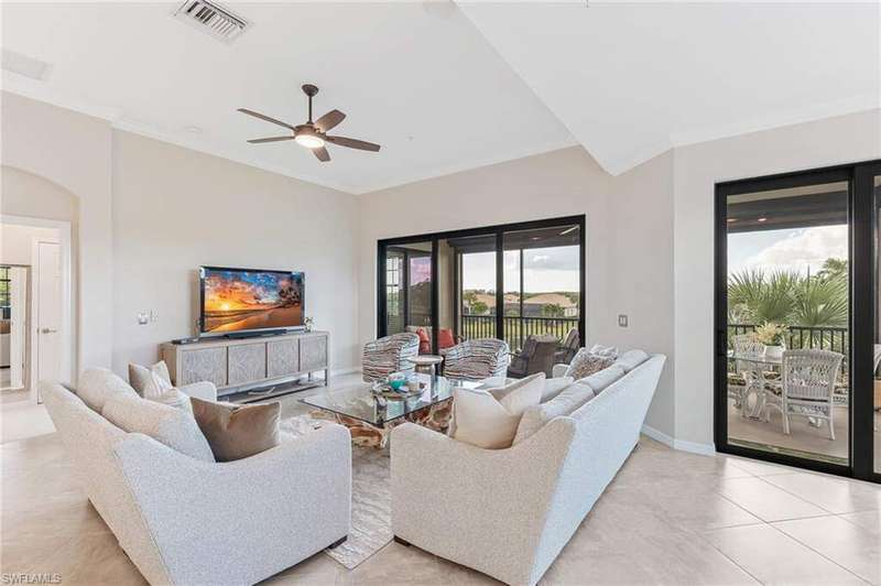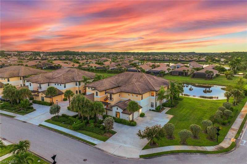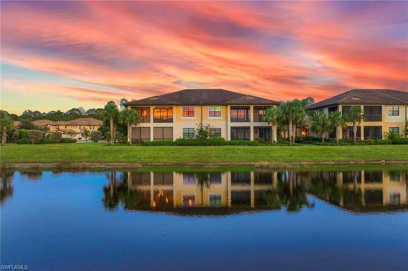 ONE OF THE BEST LAKE/WATER VIEWS IN PELICAN PRESERVE. . . Perfectly positioned with a short walk to Casella's Community Pool, this spacious, second floor unit w/private elevator spans over 2,500 total sq. ft. The bright and sunny unit with its volume, tray ceilings feature updates of new interior paint throughout with soothing shades of all-natural hues to compliment the negotiable brand-new coastal furnishings and beautiful new carpet flooring. The open concept designed kitchen has premium stainless-steel appliances; 42" white cabinets; counter bar island seating; large walk-in pantry with custom built-in shelving; and beautiful white quartz counter tops w/new tile backsplash. Multiple sets of sliding glass doors lead out to the covered lanai w/new tile flooring + electric hurricane shutters. The enclosed, screened balcony offers endless, panoramic sunsets captured by its coveted western facing lake view. A two-car garage with added storage hooks and shelf + laundry room with new cabinets and sink complete this unit with flexible storage space options. Perfect for anyone seeking a second home or as a permanent residence. . . this home invites true resort-style living and an elite lifestyle in an amenity rich, active 55+ community. Be sure to check out all of the Town Center's community offerings of multiple sports, arts & crafts activities, social clubs, indoor movies and live concerts. Truly a coastal get-a-way you'll love coming home to.