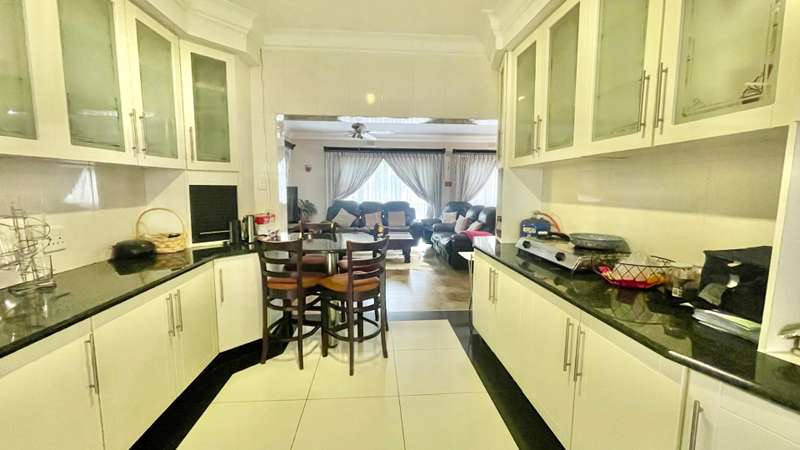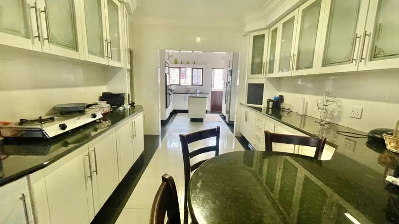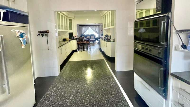 Large family home with 5 bedrooms set on this hilltop with beautiful views of the valley. The modern kitchen has granite counters and upmarket cabinets. There is a centre island and a breakfast counter as well as a double eye level oven. Spacious open plan living and dining area.
