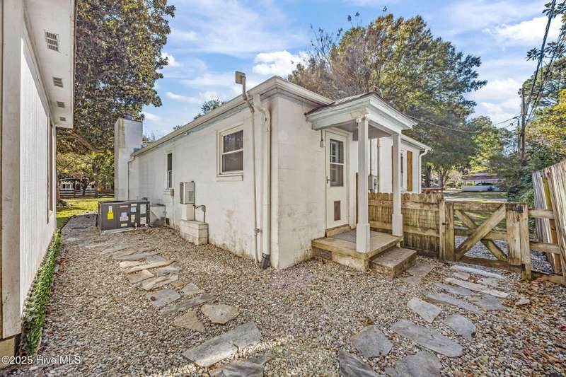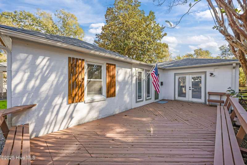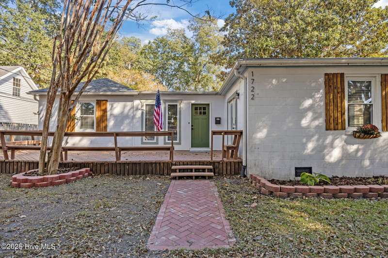 Back on the Market-Buyer Couldn't Make Their Plans Work! This beautiful property is ready for a new buyer-take advantage of this rare opportunity Nestled in the highly desirable Ghent neighborhood, this beautifully maintained home blends classic charm with modern updates. Inside, you'll find an open floor plan with luxury vinyl plank flooring throughout. The Primary suite is large with its own double doors leading to the spacious deck-perfect for morning coffee or evening relaxation. The primary bathroom has a tiled walk-in shower, and modern updates, including a barn door to the private bedroom. A newly enclosed front room offers versatile space ideal for a guest room, home office, or cozy den. The kitchen features gas cooking, and attractive stainless-steel appliances. Set on a generous double lot, the property features a split rail fence, garden boxes, and mature landscaping that create a peaceful outdoor retreat. A large exterior building equipped with power provides the perfect workshop or ample storage, while a circular driveway adds convenience and curb appeal. With a new HVAC system and roof, this home offers peace of mind and easy living just minutes from historic downtown New Bern, shops, and restaurants.