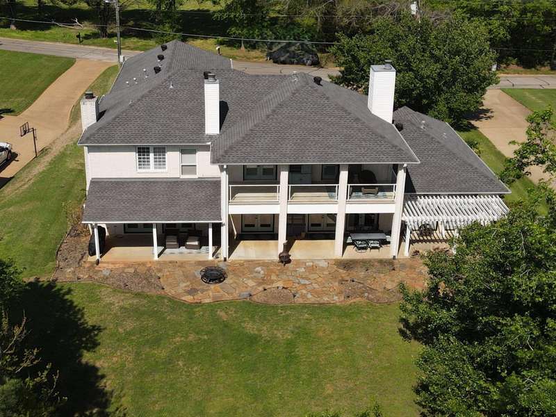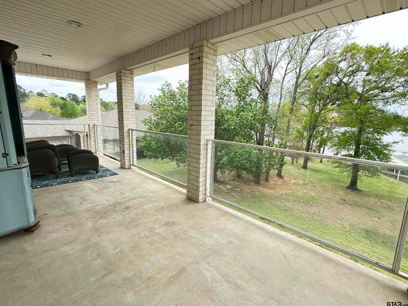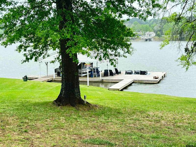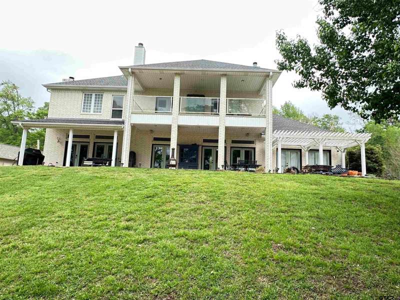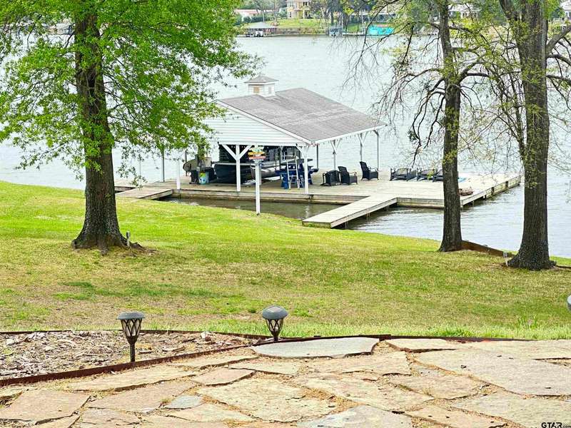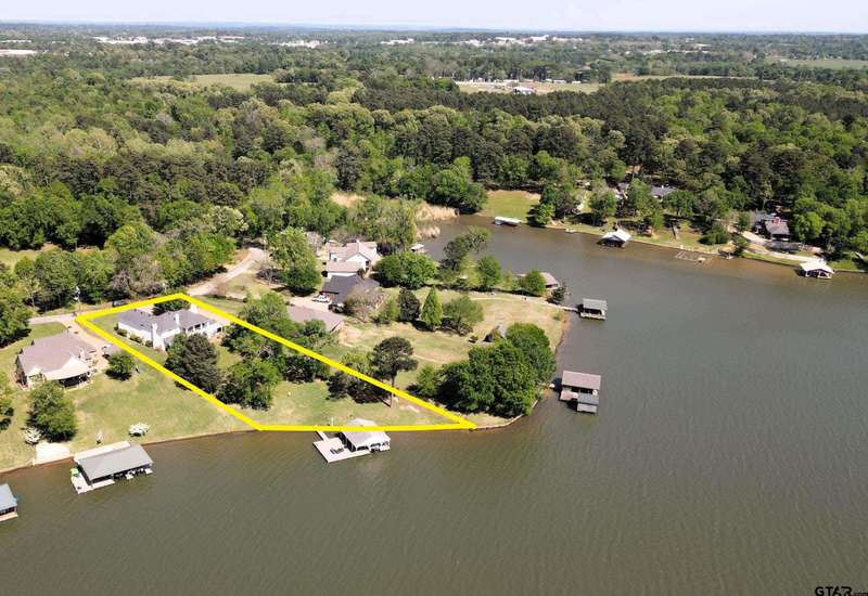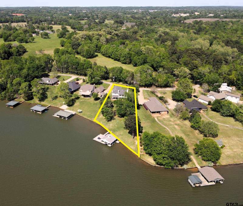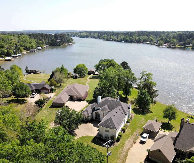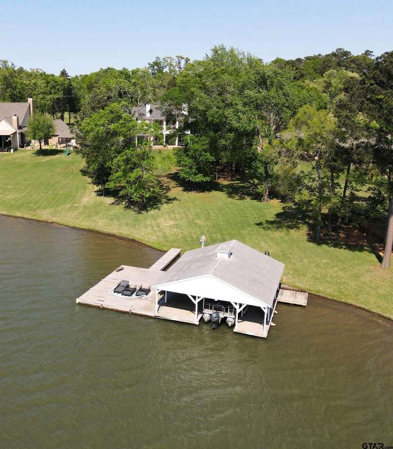 Stunning Luxury 4-Bedroom, 4.5-Bathroom Home with Guest Quarters & Breathtaking Lake Views. This exquisite two-story home offers the perfect blend of elegance, comfort, and functionality. Situated on a meticulously landscaped lot with over 173' of pristine shoreline, property provides unparalleled lake views and a swimming beach area. Move-in ready & immaculately maintained, home is designed for those who value luxury & modern convenience. Spacious & Open Floor Plan, the home boasts a grand, open layout with engineered wood flooring throughout the downstairs, creating a seamless flow between the living, dining, & kitchen areas. Perfect for both intimate gatherings and large-scale entertaining. Gourmet Kitchen, a chef's dream, the kitchen is equipped with granite countertops, a WOLF burner gas stove with griddle, a convection/conventional oven & a pot filler for convenience. Custom, lighted cabinets with adjustable shelves offer abundant storage, walk-in pantry ensures everything is within reach. The breakfast bar provides additional seating, perfect for casual dining.The home features three fireplaces, including one see-through unit, creating a cozy and inviting atmosphere throughout. Downstairs Living includes two spacious bedrooms, each with easy access to a beautiful bathroom featuring a tile shower & granite vanity. A large utility room with built-ins & a sink adds functionality & convenience. A sweeping curved wood staircase that leads to the master suite with its own fireplace & private balcony overlooking the serene lake views. The master bath features luxurious finishes, including a large walk-in closet with custom built-ins. Two addn bedrooms and bath up. The second upstairs bedroom also has its own balcony & shares the stunning views. Guest Quarters/game room, kitchenette & full bath over 3 car garage. Boat house with lift and sun deck, all on open waters.