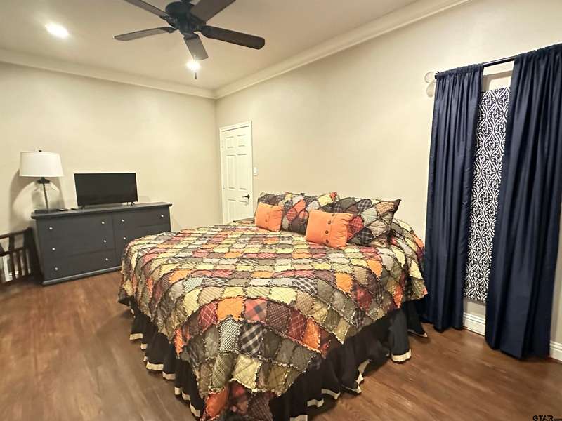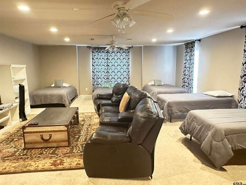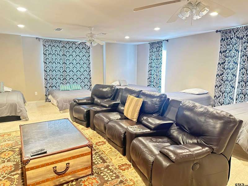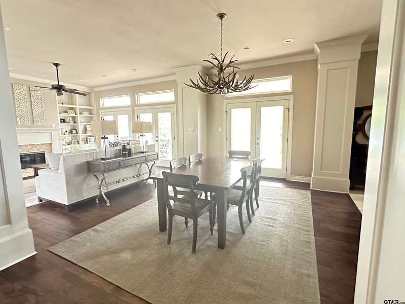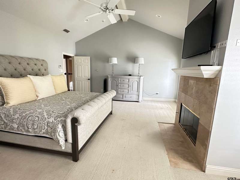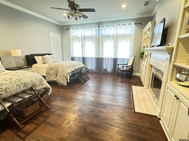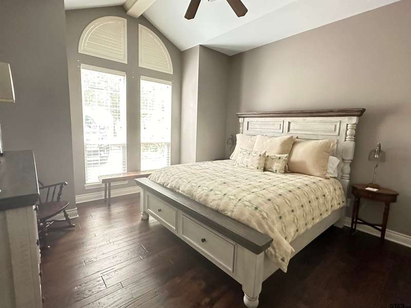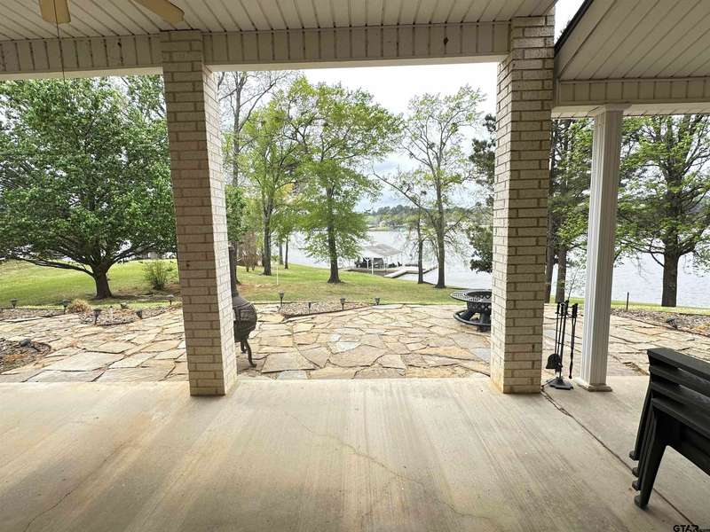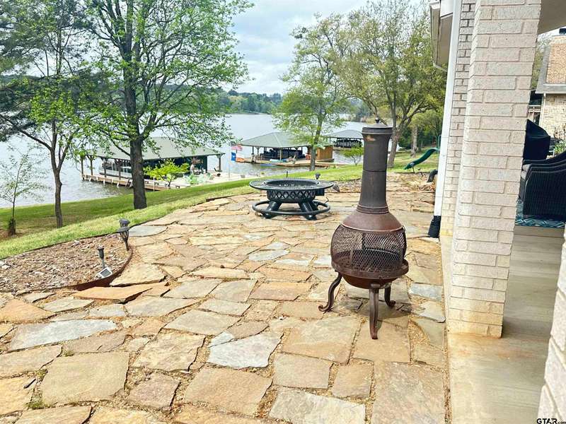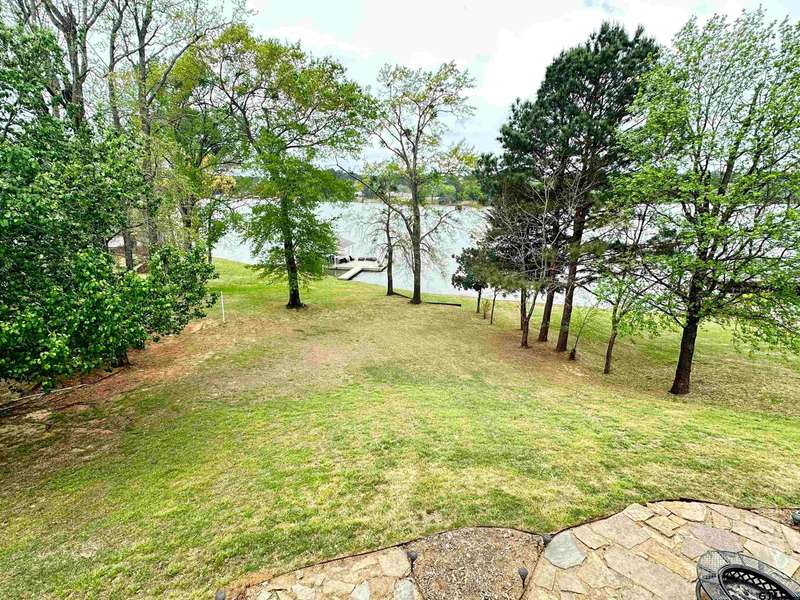 Stunning Luxury 4-Bedroom, 4.5-Bathroom Home with Guest Quarters & Breathtaking Lake Views. This exquisite two-story home offers the perfect blend of elegance, comfort, and functionality. Situated on a meticulously landscaped lot with over 173' of pristine shoreline, property provides unparalleled lake views and a swimming beach area. Move-in ready & immaculately maintained, home is designed for those who value luxury & modern convenience. Spacious & Open Floor Plan, the home boasts a grand, open layout with engineered wood flooring throughout the downstairs, creating a seamless flow between the living, dining, & kitchen areas. Perfect for both intimate gatherings and large-scale entertaining. Gourmet Kitchen, a chef's dream, the kitchen is equipped with granite countertops, a WOLF burner gas stove with griddle, a convection/conventional oven & a pot filler for convenience. Custom, lighted cabinets with adjustable shelves offer abundant storage, walk-in pantry ensures everything is within reach. The breakfast bar provides additional seating, perfect for casual dining.The home features three fireplaces, including one see-through unit, creating a cozy and inviting atmosphere throughout. Downstairs Living includes two spacious bedrooms, each with easy access to a beautiful bathroom featuring a tile shower & granite vanity. A large utility room with built-ins & a sink adds functionality & convenience. A sweeping curved wood staircase that leads to the master suite with its own fireplace & private balcony overlooking the serene lake views. The master bath features luxurious finishes, including a large walk-in closet with custom built-ins. Two addn bedrooms and bath up. The second upstairs bedroom also has its own balcony & shares the stunning views. Guest Quarters/game room, kitchenette & full bath over 3 car garage. Boat house with lift and sun deck, all on open waters.