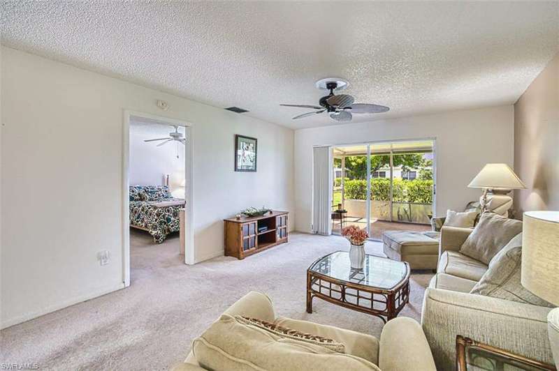 Your COZY "condo-villa" in the desirable 55+ Myerlee Gardens Condo community awaits you! This CHARMING 2-bed / 2-bath home is perfect for those looking to add their own creative touch or to grow their INVESTMENT portfolio. With formica counters, white appliances, and a mix of carpet and tile flooring, this villa wants your personal style to shine through. The SPLIT BEDROOMS offer privacy and a space for family or friends, while the stack W/D IN RESIDENCE adds an extra level of convenience. FURNISHINGS NEGOTIABLE for a move-in-ready experience! Enjoy the Florida sunshine, relaxing in your SCREENED LANAI or LARGE GRASSY AREA out back. Or, take a short walk or bike ride to the OVERSIZED COMMUNITY POOL/SPA, perfect for sun, fun, and socializing. This ACTIVE & FRIENDLY community also offers a clubhouse where they have clubs and social events, BILLIARDS, LIBRARY, GYM, BOCCE, PICKLEBALL/TENNIS, SHUFFLEBOARD, and BBQ areas! This Myerlee community is perfectly positioned between DOWNTOWN Fort Myers, FORT MYERS BEACH, CAPE CORAL--giving you easy access to the best shopping, dining, entertainment, and healthcare options. With the LOWEST CONDO FEES in the many Myerlee condo communities, LOW TAXES, PRIME LOCATION, and the option for PAY-TO-PLAY OR MEMBERSHIPS AVAILABLE, this villa truly offers the BEST VALUE BUY in the area. Don't miss out on this opportunity to make this home your own and enjoy all that Myerlee Gardens Condo has to offer. Schedule a showing today and start envisioning the possibilities for your new home!