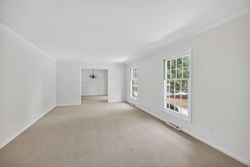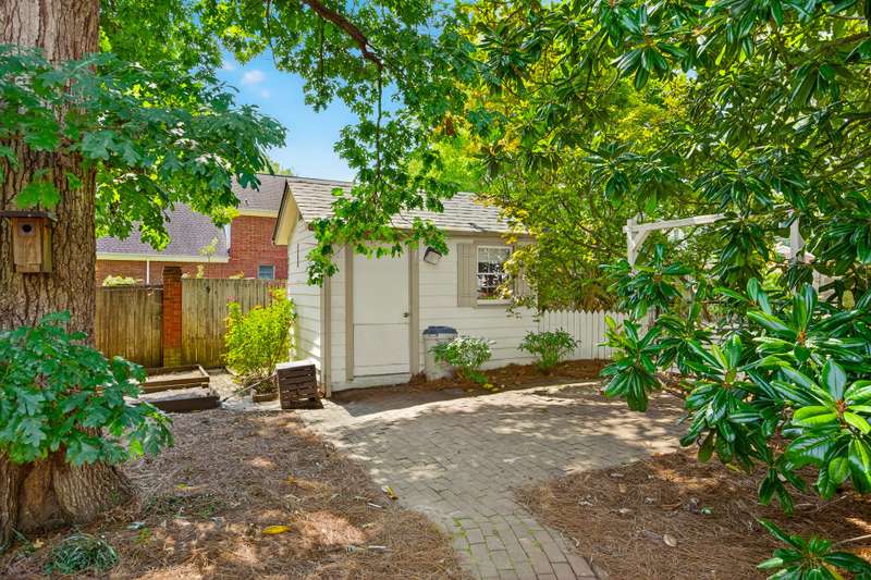 Welcome to a one-owner brick ranch with a partially finished basement near the Alamance Country Club & Don Ross golf course. Features are slate-floored entry w/large living room and adjoining dining room. Kitchen adjoins spacious breakfast room. Rear laundry room + 1/2 bath + walk-in pantry. The den offers built-in shelving and desk and gas log fireplace. HWs in den & hall per seller. Sunroom is located at rear of the house & not included in finished sq ft. 4 large brs on main served by 2 baths- one of which updated and features heated floors, solar tube lighting, granite top, tiled flooring. Separate rear sun room 10x16 ( not included in sq ft) has cooling unit installed. Basement find a large finished family room, bedroom w/bath, rec room area & unfinished spacious workshop. New roof 2024, gas hot water heater 2020. Very attractive fenced rear yard & storage bldg. No HOA!!Per appraisal Hted sq ft 2386 main flr. Basement 884 sq ft. finished.238 unfinished.