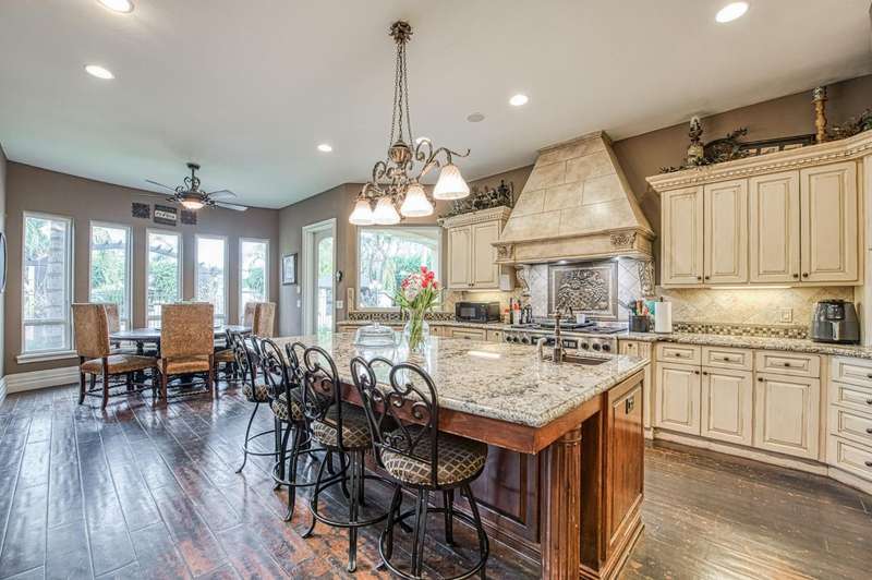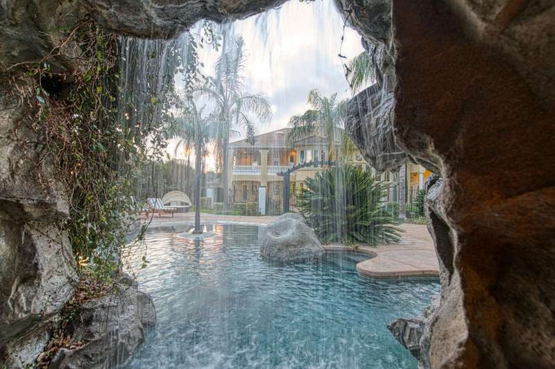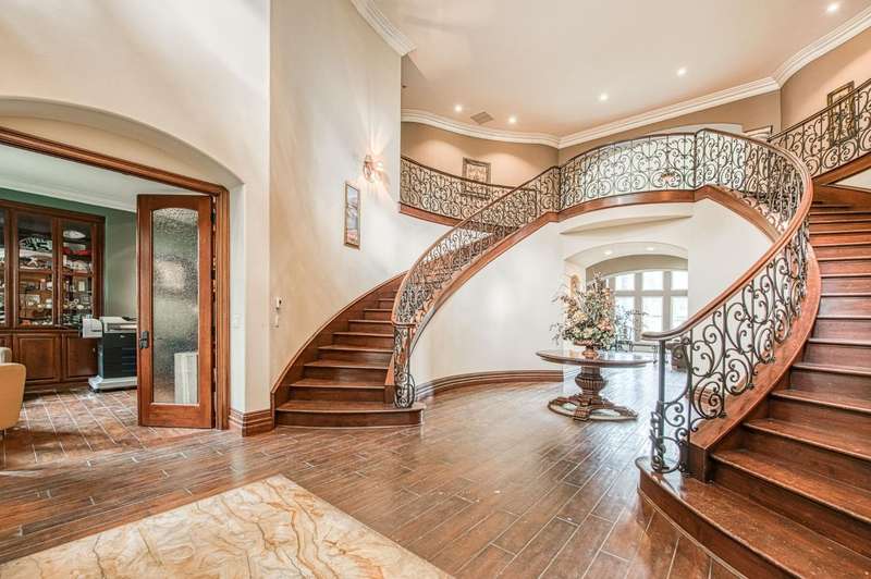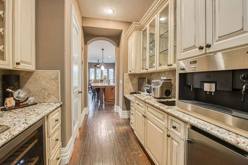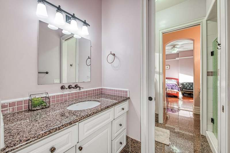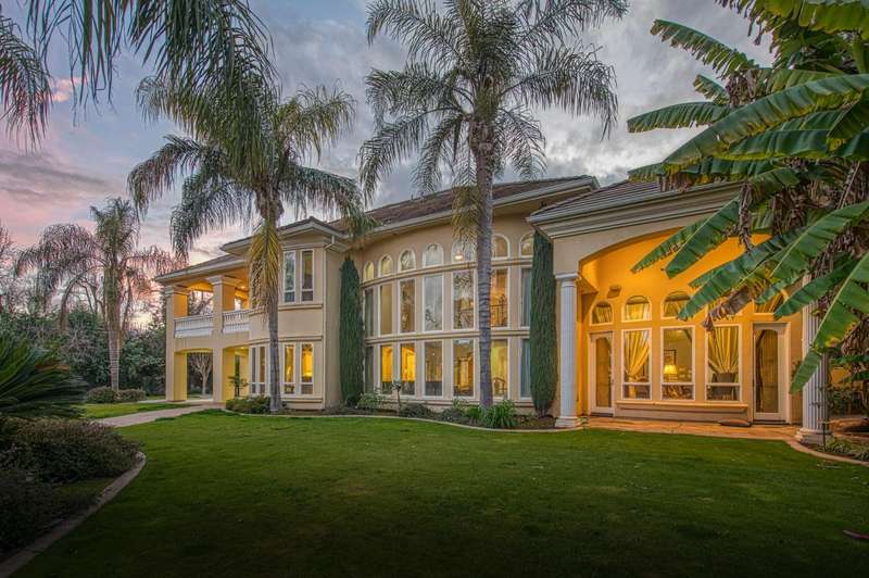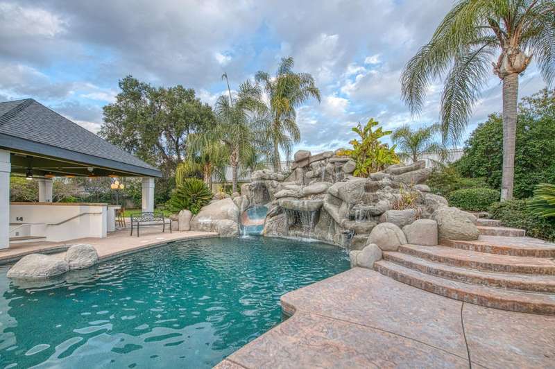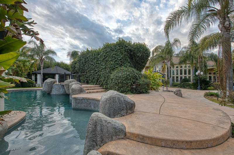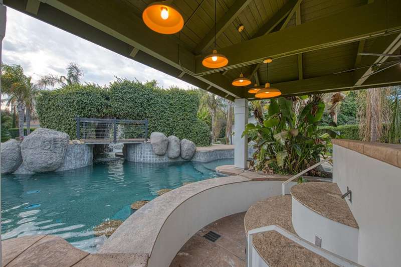 Discover this custom estate in Fresno's prestigious Old Fig Garden; a home that redefines resort-style elegance with every detail crafted for lavish comfort and unforgettable gatherings. Step inside to a grand entrance featuring soaring ceilings, an elegant staircase, and expansive living areas that effortlessly blend formal dining with versatile spaces, including two dedicated offices ideal for work or study.The chef's dream kitchen boasts granite countertops, a sprawling center island, state-of-the-art gas appliances, a generous walk-in pantry, and top-tier Subzero refrigeration with double ovens. Retreat to the master suite, complete with heated bathroom floors, an infinity tub with a serene waterfall, and a secluded outdoor spa, while additional bedrooms offer personalized climate control.Upstairs, a private bar with a poker table and your personal home theater with a balcony overlook the spectacular backyard. Outside, resort-style grounds impress with a dazzling water park featuring a walk-in saltwater pool, grotto lounge, swim-up bar, cascading waterfalls, and water slide, plus custom gazebos with a built-in BBQ and outdoor kitchen. Completing this exceptional property are a professionally appointed barbershop, a spacious 2,700sqft metal building currently serving as a batting cage (with potential for storage or events), and a 450sqft pool house with a bathroom.