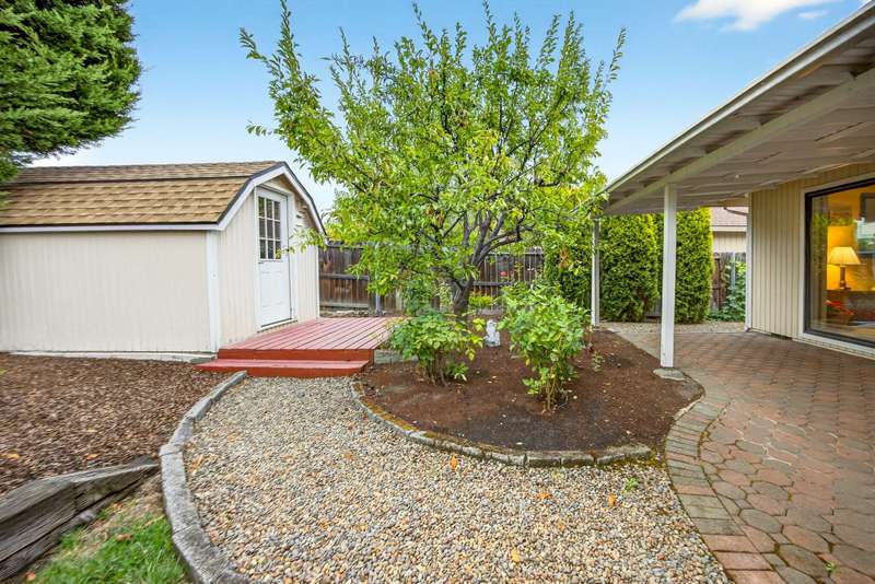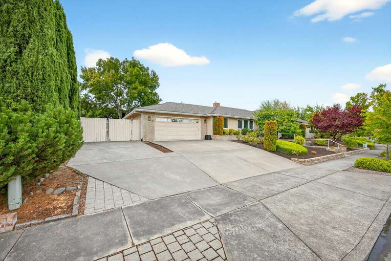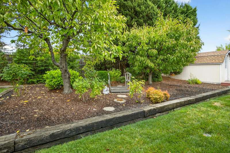 Welcome home! This home is located in one of Medford's most sought after established neighborhoods! This beautifully maintained 3 bedrooms, 2 ½ bathroom home offers 1,791 sq ft of living space on nearly ¼ acre. Inside, you'll find a light filled kitchen with granite counters and large skylight. The oversized living room features a cozy gas fireplace and wall of windows. The primary suite has private patio access and is situated at the back of the home for extra privacy. Updates include a new roof (2025), newer HVAC (2023), and low-flow toilets. Outdoor living shines with a large, covered patio, manicured landscaping, mature Magnolia, Plum & Cherry trees, an in-ground watering system with timers, and a garden shed. A sunroom adds bonus space. Enjoy a spacious 2-car garage with extra storage room and a workspace, plus RV parking with full hook-ups. Move-in ready —schedule your tour today, this gem won't last!