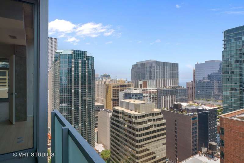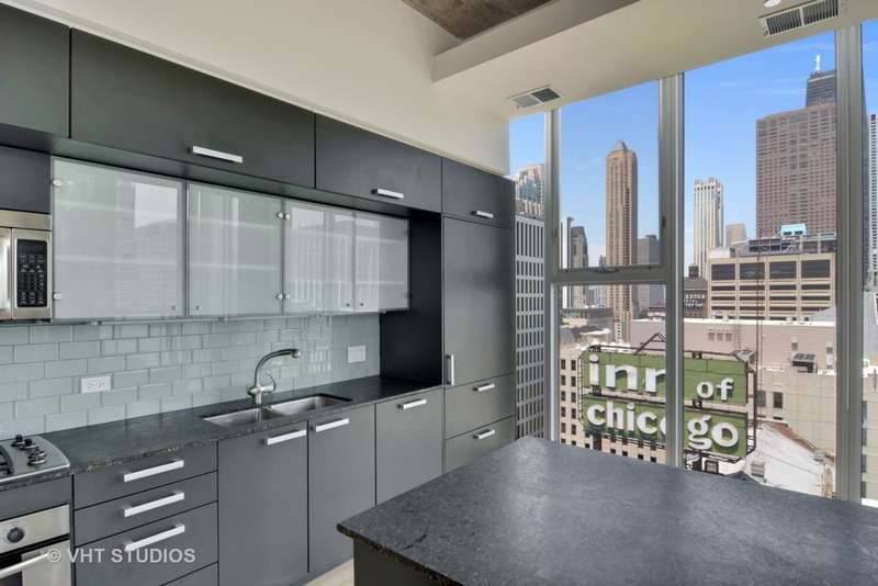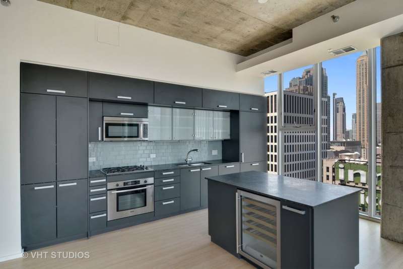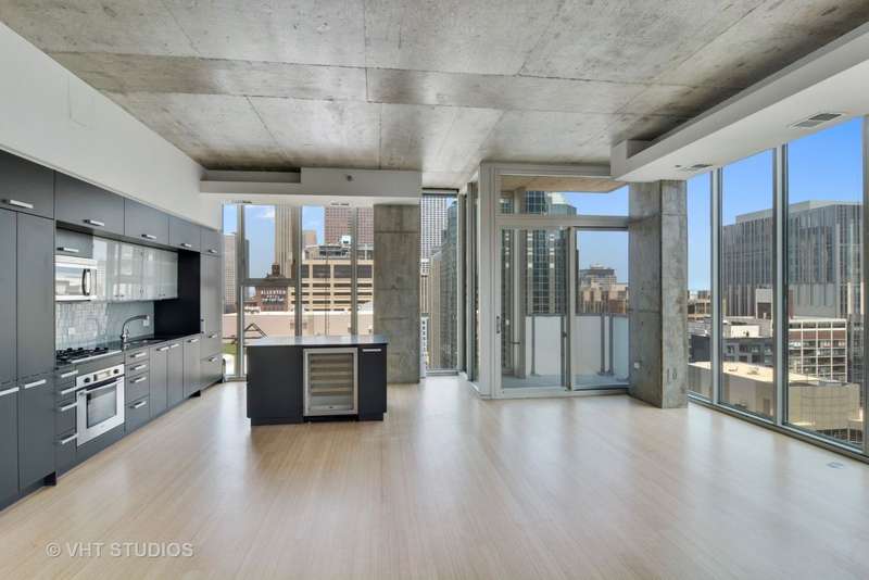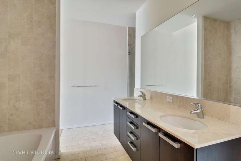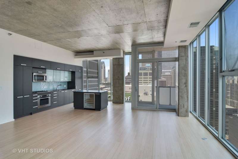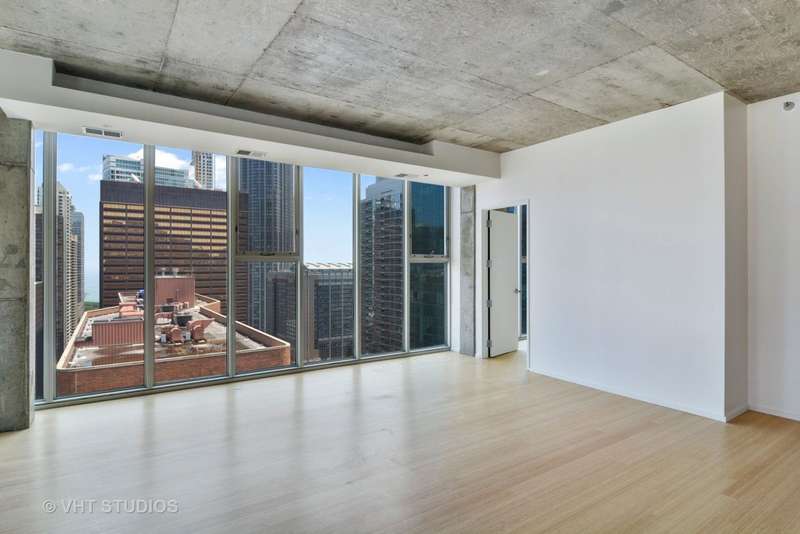 RARE AND COVETED MODERN HIGH-RISE LOFT HYBRID FEATURING NEARLY 2200 SQ FT WITH ALL BAMBOO HARDWOOD FLRS, FLOOR TO CEILING GLASS CURTAIN WALLS, 11' CEILINGS, EXPOSED CONCRETE. THIS RARELY AVAILABLE FLOOR PLAN, 3 FULL BATH HOME FEATURES ITALIAN MADE ESPRESSO ALNO CABINETRY, THERMODOR, SUBZERO, BOSCH STAINLESS STEEL APPLIANCES. GRANITE ISLAND KITCHEN OPENS TO 22X18' LIVING SPACE. TWO PRIVATE TERRACES. BATHS IN MARBLE/HONED TRAVERTINE. SPLIT BEDROOM FLOOR PLAN. THIRD BEDROOM IS FULLY ENCLOSED AND TRUE. MASTER SUITE BOASTS HIS/HERS CLOSETS. BATH DRESSED IN MARBLE AND TRAVERTINE. IN UNIT WASHER AND DRYER. NORTHEAST CORNER SKYLINE VIEWS. 2 HEATED GARAGE PARKING SPACES INCLUDED IN LIST PRICE. ACHIEVE THE BEST OF BOTH WORLDS WITH HIGH-RISE LIVING AND A LOFT STYLE UNIT UNIQUE TO CHICAGO. ALL INCLUSIVE RENT. TENANT ONLY PAYS ELECTRIC.