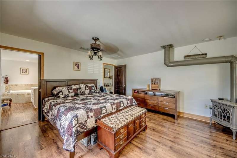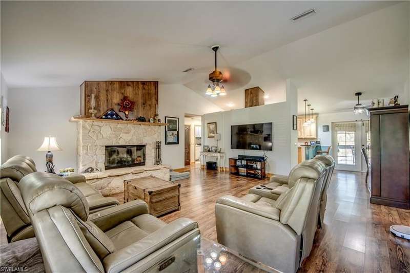 THIS ONE HAS IT ALL!! Florida-Style charm meets modern upgrades in this stunning 3 Bedroom 2/Bath home! Enjoy cozy nights by the fireplace in the Living Room. Cook like a Pro in the upgraded kitchen featuring a Viking Range and a High-End Kitchenaid Refrigerator. Relax in in your private in-ground Pool & Spa(2021). The home boasts durable vinly plank flooring, a newer ac unit, and a long lasting metal roof! Bonus: a 4 car garage with the end bay converted into the perfect man cave/poker room or whatever you need it for!! There are Hurricane Windows Across the Front 3 rooms and hurricane panels for the rest of the house. The generator stays! RV accomodations include a carport 18' X 35' and a 50 amp plug!! This is all set on a 1/2 acre cul-de-sac lot that backs up to a wooded area! Space, Style and Privacy all in one!!! Come, see and discover this GEM!