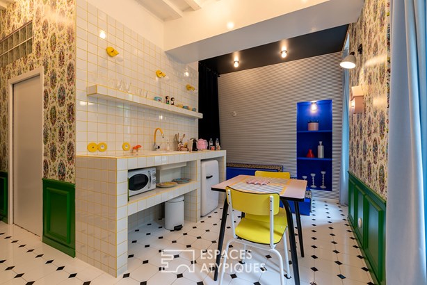 Past the door of the secure building, at the end of a courtyard, you will discover a renovated and equipped property, in a pop, colorful, joyful style.