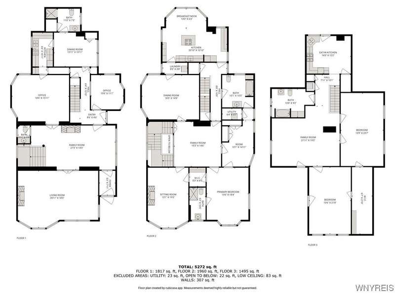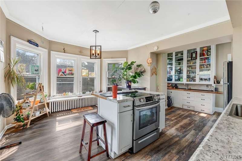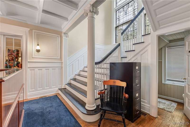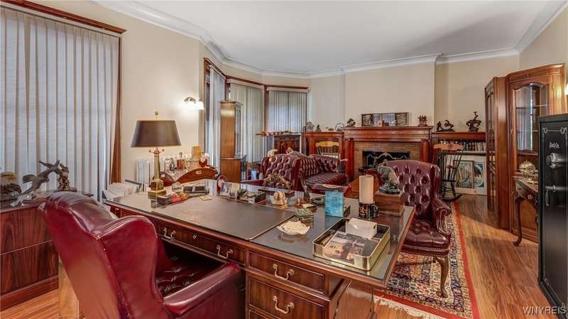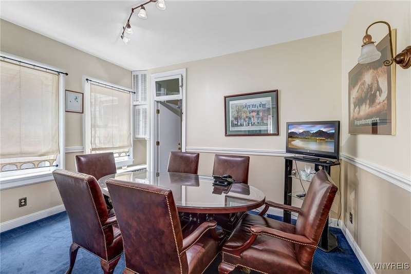 Opportunities galore with this stunning 3-unit property which offers an exceptional opportunity for investors looking to acquire a tenant-occupied multi-family building with steady rental income or an owner user looking to offset their mortgage payments with rents. The property has been meticulously maintained and can easily be transformed back into a spectacular, show-stopping, single family home of the highest caliber. Situated in the highly desirable Historic Preservation District, the second and third floor units are fully leased with reliable tenants, ensuring immediate cash flow from day one. The building consists of three spacious floors, featuring original woodwork, ornate handles, and historic details that simply cannot be replicated. The impressive first floor is currently being used by the owner as an office. It has a front reception area with fireplace, conference room, formal office with fireplace, bathroom, kitchen, central AC and more. The rental units have updated well-equipped kitchens, in-unit laundry, comfortable living spaces, and ample natural light. The second-floor unit has high ceilings, two large bedrooms, two full baths, and a spacious family room with beautiful fireplace. The third-floor unit has two large bedrooms, an eat-in kitchen, and rear porch. Upgrades to the electric, circuit breakers, generator, AC and more. Roof(2015). Full basement houses all the mechanics and currently being used for storage. Full concrete driveway, ample parking spaces, and a two-car garage! Located within close proximity to local amenities such as shops, restaurants, parks, and public transportation. This property provides both convenience for tenants and strong potential for long-term value growth. Whether you're looking to expand your real estate portfolio or seeking a chance to live in one of Buffalo's most premier residences, this property offers a fantastic opportunity for investors and homeowners alike. Sqft is 5,272 professionally measured with floorplans provided.