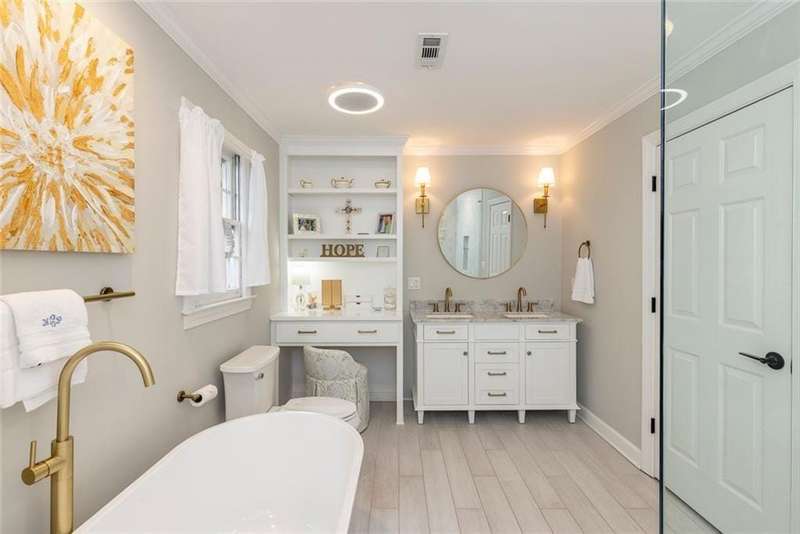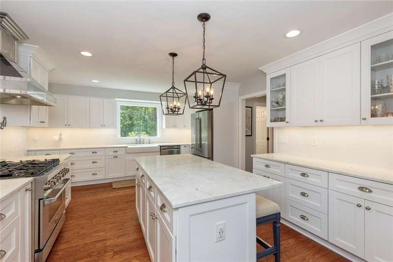 Exquisite All-Brick Masterpiece in Prestigious Rivergate! Welcome to this stunning, move-in ready home, perfectly situated on a beautifully landscaped 1.2-acre lot in the highly sought-after Rivergate neighborhood. Impeccably maintained and boasting a spectacular renovation, this all-brick residence offers timeless elegance, modern luxuries, and exceptional attention to detail. Step into the breathtaking two-story marble entry foyer, where natural light pours in and gleaming hardwood floors lead the way to a gracious living room with custom built-ins and a formal dining room. The newly renovated chefs kitchen is a true showpiece, where the dining room flows seamlessly into a light-filled space featuring crisp white cabinetry, marble countertops, subway tile backsplash, and a large center island with breakfast bar. Top-of-the-line stainless steel appliances include a professional-grade gas range with pot filler and a microwave/convection oven, creating both beauty and function for everyday living and entertaining. A charming farm sink, bright breakfast area, and spacious walk-in pantry complete this culinary haven. The inviting, paneled family room is accented by a beamed ceiling, built-in bookcases, and a brick fireplace, with French doors opening to a slate patio that overlooks the private, wooded backyardan ideal setting for outdoor entertaining or peaceful relaxation. The main level also hosts the luxurious owners suite, offering a serene retreat with a spa-like bath featuring dual marble vanities beneath a natural-light-filled skylight, a glass-enclosed shower, and a large walk-in closet. Rounding out the main level is stylish half bath for guests. Upstairs, a spacious landing connects to an additional primary suite with a beautifully renovated bath showcasing a dual vanity, frameless glass shower, and free-standing soaking tub. Two generously sized secondary bedrooms share a gorgeous hall bath. The spacious daylight terrace level expands your lifestyle possibilities with a game room, media area, office space, half bath, large laundry room, and abundant storage. Perfectly located in the Sandy Springs/Dunwoody area, this exceptional home offers convenient access to top-rated public and private schools, premier shopping and dining, recreational destinations including Dunwoody Country Club and Golf Course, and major interstatesplacing all that Atlanta has to offer right at your fingertips. A perfect blend of timeless design, modern updates, and an unbeatable locationready to welcome you home.