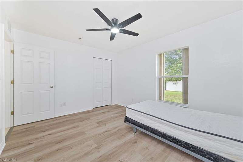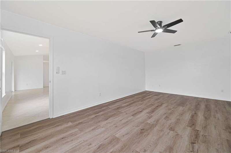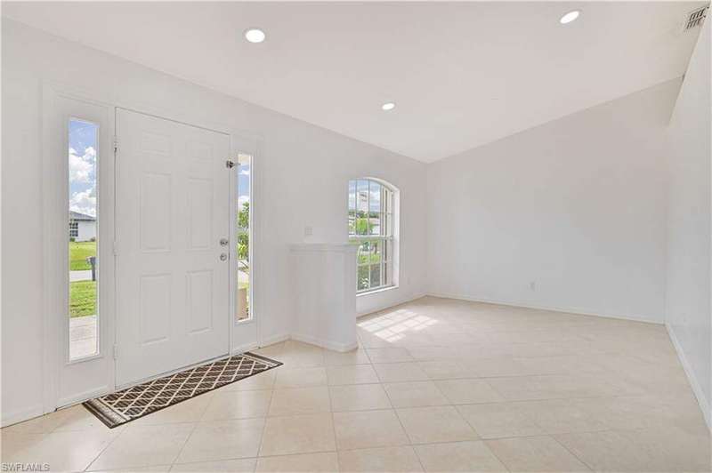 No Flood Insurance Required - High and Dry! Seller offering $5000 towards Buyers closing costs/prepaids. This spacious and beautifully updated 3-bedroom, 2-bath home is perfect for buyers seeking extra room to live, work, and relax. Recent upgrades provide peace of mind, including a newer roof, brand-new ice-cold A/C, accordion storm shutters, updated appliances, new countertops, stylish bathroom vanities, and fresh interior paint throughout. Enjoy the comfort of a screened lanai off the back of the home, an interior laundry room with hookups, a dedicated dining area, and a versatile flex space at the front-ideal for a home office, playroom, or reading nook. Located in a quiet, established neighborhood close to shopping, top-rated schools, and just a short drive to multiple beautiful beaches. The big-ticket items are already taken care of-move in and start enjoying the Florida lifestyle!