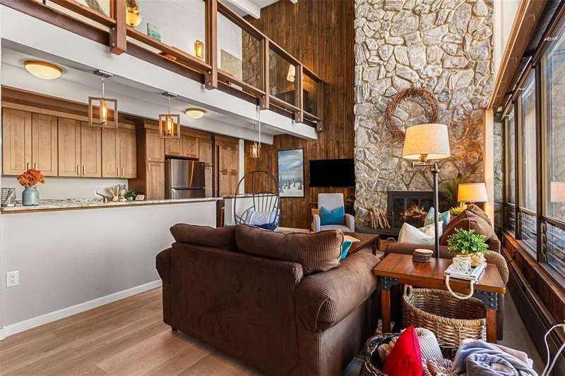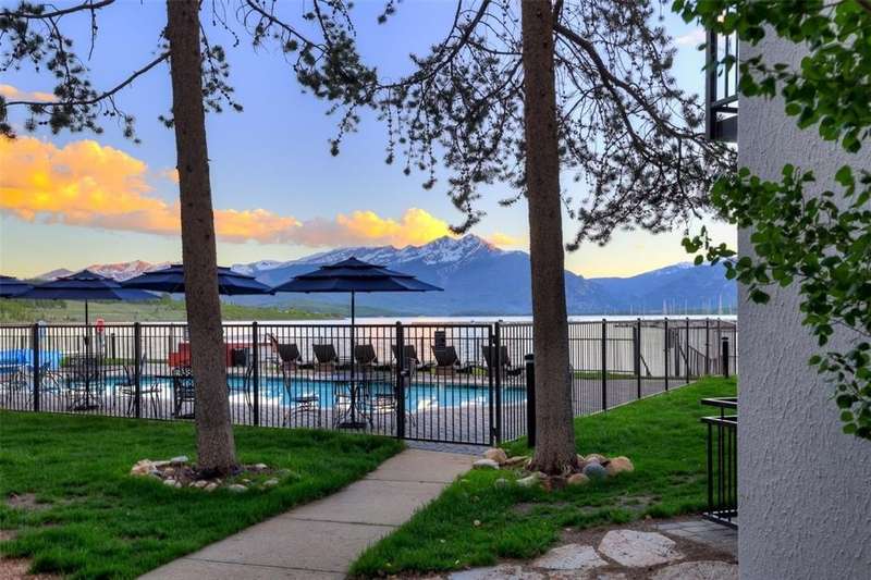 Welcome to your dream lakefront home, a rare top-floor, remodeled, two-level condo offering breathtaking panoramic views of snow-capped peaks, Lake Dillon, and the Marina. With a large private deck overlooking the heated seasonal pool and lake, it’s the perfect setting for morning coffee, sunset dinners, and unforgettable gatherings with friends and family. This spacious 4-bedroom, 4-bath residence blends comfort with functionality as each bedroom features its own en-suite bath. The vaulted ceilings and soaring windows flood the great room and loft with natural light, bring the outdoors in. A versatile lofted area overlooks the expansive great room, ideal for work or entertainment. The open-concept living space includes a fully remodeled kitchen with modern finishes and a layout designed for easy cooking and entertaining. The spacious great room features massive windows and a floor to ceiling rock fireplace. The secure interior and exterior owner closets offer excellent storage for ski gear, bikes, paddleboards. And the 3 parking spaces make access easy for your family and friends. Step outside to enjoy direct access to summer paddleboarding, kayaking, and lakeside strolls. Relax in the lakefront hot tub, swim in the heated outdoor pool, or bike the scenic recreation path to the Dillon Amphitheater, Marina, or town. Golf at five nearby mountain courses or explore five world-class ski resort, all within a 30 minute drive. A professionally managed HOA ensures peace of mind with on-site maintenance, snow removal, parking, trash and recycling collection, amenity upkeep, and landscaping. HOA dues include heat. Short-term rentals are allowed, making this a perfect blend of lifestyle and investment. Come see why this lakefront gem is one of Dillon’s most sought-after properties.