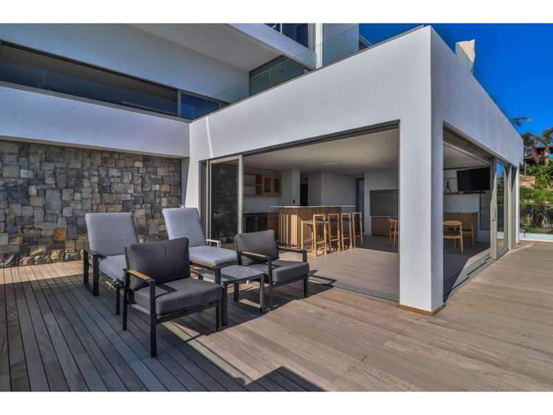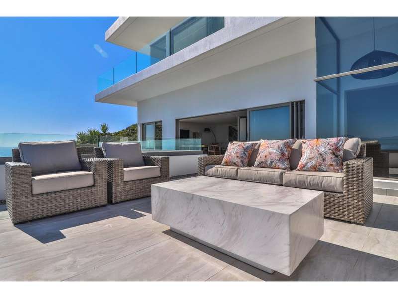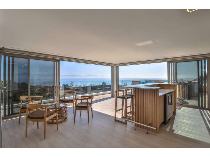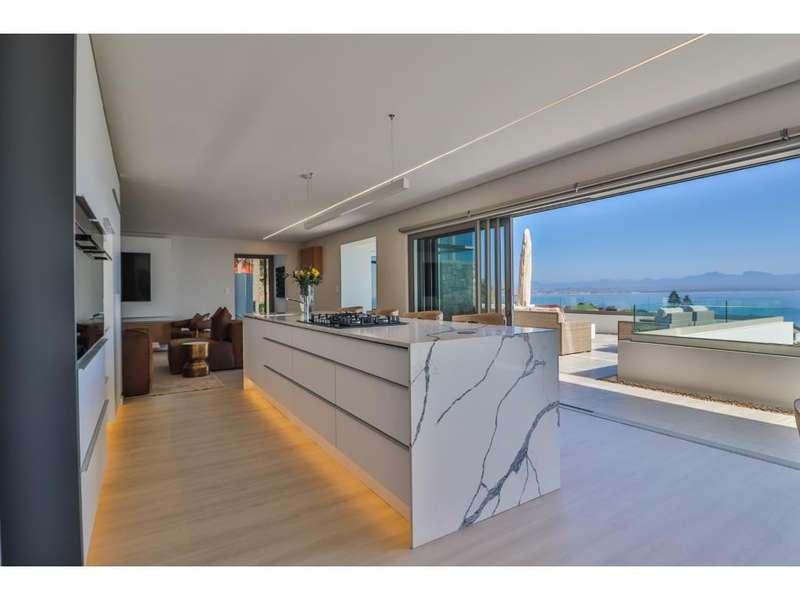 Brand New Iconic House for Sale in Mossel Bay. Welcome to an architectural masterpiece perfectly situated to capture breathtaking views of the Indian Ocean and the majestic Outeniqua Mountains. This stunning north-facing home embraces warmth year-round, combining modern aesthetics with meticulous attention to detail in every corner. The spacious private entertainment level features a stylish bar, ideal for hosting friends and family, and a built-in braai that invites you to enjoy outdoor cooking year-round. This level flows effortlessly to the pool patio, where you can relax in the heated pool, basking in the sun and sipping a cold drink while soaking in the stunning vistas. The expansive patio space is perfect for alfresco dining or lounging, making it the ultimate oasis for gatherings and leisure. Take the elevator to the next level, where the heart of the home unfolds in an open-plan design. The contemporary kitchen, equipped with high-end appliances and sleek cabinetry, is perfect for culinary enthusiasts. An oversized island offers ample space for meal prep and casual dining. The living and dining areas are bathed in natural light, thanks to large sliding doors that beckon the fresh ocean breeze indoors. Imagine enjoying family dinners while gazing out at the picturesque coastline, a daily reminder of nature?ÇÖs beauty. Ascend to the top level, where comfort meets luxury in four spacious bedrooms, each with its own ensuite bathroom. The master suite is a true sanctuary, thoughtfully positioned to capture the best views, complete with a private balcony where you can sip your morning coffee while watching the sunrise over the ocean. Each guest bedroom is designed with comfort in mind, providing a welcoming retreat for family and friends. Beyond the exquisite design and luxurious interiors, this exceptional property boasts a prime location. Just a short stroll away, you?ÇÖll find the renowned Mossel Bay Point, where a variety of exceptional restaurants and charming caf??s await to tantalize your taste buds. Enjoy leisurely walks along the beach, explore local boutiques, or indulge in the vibrant atmosphere of this beloved coastal town. Experience the perfect blend of luxury, comfort, and breathtaking scenery in your new home.