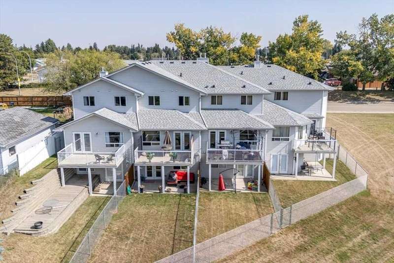 Welcome to this 4-unit townhouse complex, thoughtfully designed for comfort, convenience, and lifestyle. Each unit features an attached single garage, walk-out basement to an awesome backyard, and picturesque views backing onto a serene pond and scenic walking paths—perfect for morning strolls or evening unwinding. Property Highlights: Three units offer 3 spacious bedrooms and 3 bathrooms One unit features 2 oversized bedrooms, ideal for downsizers or small families Nearly 1700 sq ft of above ground space per unit, plus expansive basements ready for development or extra storage Beautifully landscaped backyards with direct access to nature trails and water views. Located in a prime central location—just minutes from schools, shopping, restaurants, and the renowned Abbey Centre Whether you're looking to live in one and rent the others, or expand your portfolio with a turnkey multi-family property, this gem offers the perfect blend of tranquility and urban convenience.