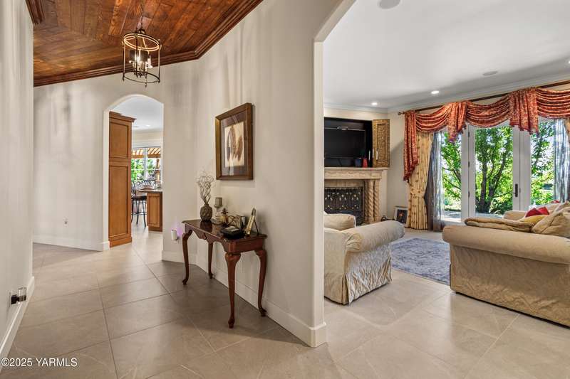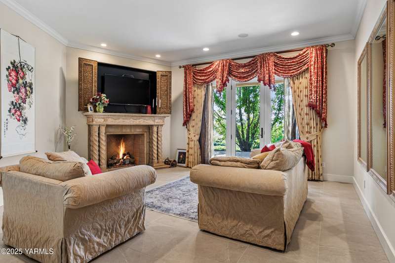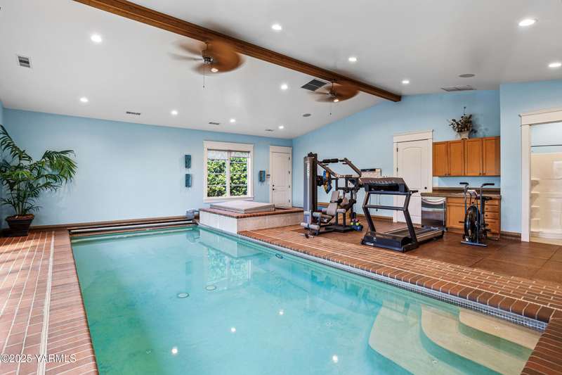 Mediterranean Elegance | Panoramic Views | Year-Round Luxury Perched in one of Yakima's most prestigious neighborhoods, 305 Mountain Shadows is a Mediterranean-inspired retreat that blends timeless design with modern comfort. From the moment you arrive, lush terraced landscaping, a cascading waterfall and stream, and panoramic views of the Cascade Mountains -- including Mount Adams -- create a stunning sense of arrival. One of the home's crown jewels is the year-round indoor pool and spa, set in a private pool room with a private gym and folding glass doors that open to an expansive terrace. Relax to the sound of the waterfall and soak in breathtaking views, or gather around the outdoor fireplace and gas grill for unforgettable evenings under the stars. Step inside the foyer, and be greeted by soaring tongue-and-groove wood ceilings, rich tile floors, and abundant natural light define the elegant interior. The chef's kitchen features a Viking range, Sub-Zero refrigerator, custom cabinetry, and a large island, flowing into a warm family room with built-ins and an adjacent dining area -- ideal for entertaining. The living room offers a tiled gas fireplace and opens to a full-length patio, merging indoor and outdoor living. The luxury primary suite is a true retreat -- offering a serene, spa-like experience with a double-headed steam shower, beautiful tile finishes, and a spacious walk-in closet. A second en-suite bedroom ensures comfort for guests, while the home office with hardwood floors and built-in cabinets creates an ideal workspace. A third bedroom (and 4th bath) adds flexibility -- perfect for a second office or guest room. For added comfort and confidence, the home features a recently upgraded HVAC system ensuring year-round comfort and efficiency. Just minutes from wineries, golf, and recreation, this exceptional property is a sanctuary of refined architecture, resort-style amenities, and natural beauty in the heart of Central Washington.