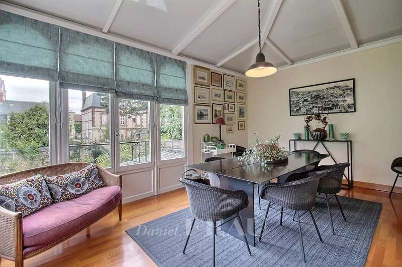 This charming early 20th century villa offering about 235 sqm of living space is in a prime location near the town centre and the shops. Enjoying a view of the racecourse and benefiting from a south-west facing landscaped garden, it includes a living/reception room with a fireplace, a dining room, a separate kitchen, a utility room, and two bedrooms with bathrooms. Upstairs are three further bedrooms and a shower room. With a garage. A rare opportunity in walking distance of all of the resort's amenities.