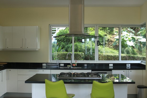 Casa Nalifos: Located in the heart of Playa Flamingo, and walkable to fantastic beaches, the site of the new Flamingo Marina, grocery stores, and an array of restaurants, lives Casa Nalifos. This beautiful Italian masterpiece has a stunning ocean and mountain views, and is perched upon a hill in the popular Altos de Flamingo guard-gated subdivision. You may enter the home from either the upper or lower staired entrance. Both entrances are beautifully landscaped with a variety of flowers and local plants that are fed by a full irrigation system, allowing for beautiful gardens year-around and easy maintenance. When entering you will enjoy the feel of the luxurious imported Italian porcelain tile that is featured throughout the entire home and patios. The gourmet kitchen offers top of the line Smeg cooking appliances that are imported from Italy. The chef in the family will enjoy the best of both worlds, with the gas cooktop and electric wall oven. The kitchen also features a stainless steel refrigerator/freezer and dishwasher. This home has 4446 sq ft of construction, which includes the upper-level family room with a retractable wall of glass doors. This opens up to create an open-air feeling and show off the beautiful ocean views. You will also enjoy ocean views from the upper-level master suite as well. There are two guest rooms on the ground level that are directly off the saltwater pool; each with ensuite bathrooms. Extra features in this home include a rooftop ocean view deck, central vacuum system, interior doors that are imported from Italy, exterior motion lighting, soft-close cabinets and drawers, rain showers, recessed lighting throughout, volcanic stone cladding, Cat 5 wiring throughout, and a security system. Casa Nalifos was designed to enjoy the beautiful views from every room, as well as taking advantage of the natural tropical breezes. It was built to the highest of efficiency standards. Altos de Flamingo has many permanent residents and a few vacation rental homes. If you are looking for a well-built home that has views, is in a gated community, and is walkable to the beach, we assure you this home will not disappoint and is a must-see!