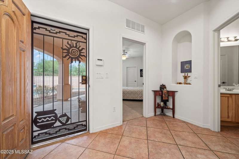 Welcome to desirable gated Vactor Ranch! This spacious home offers a sparkling pool & spa, large primary suite, and roomy kitchen with island & abundant cupboard & counter space. Nestled on a cul-de-sac bordering common area, it's close to The Loop, Udall Park, Sabino Canyon, shopping, dining & more. Move right in to the clean, open interior or add your own personal touches; either way, you'll love the value at this price!