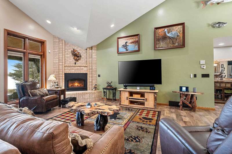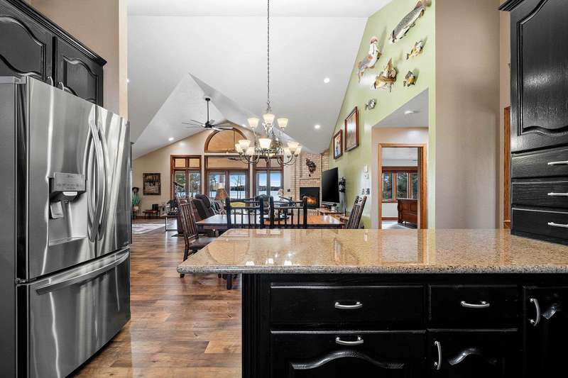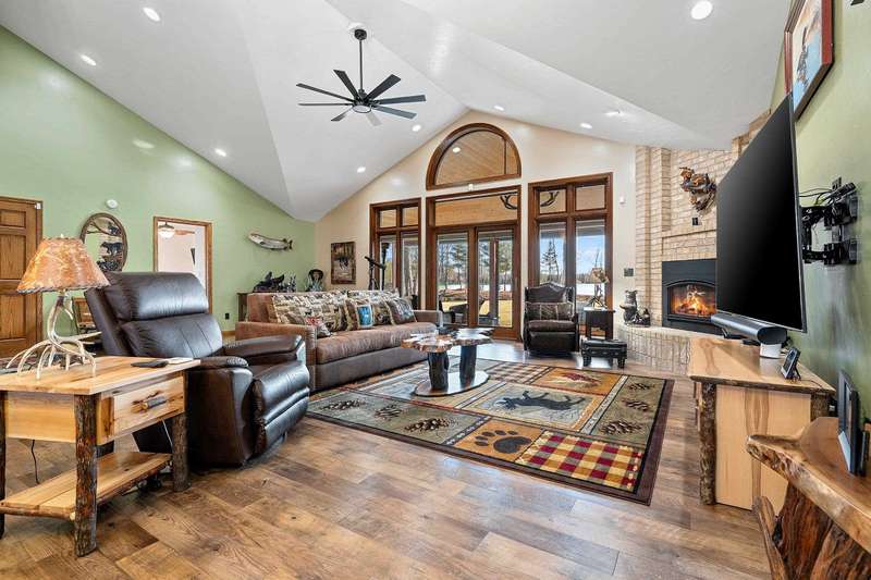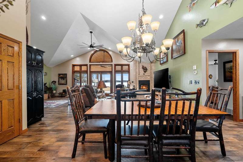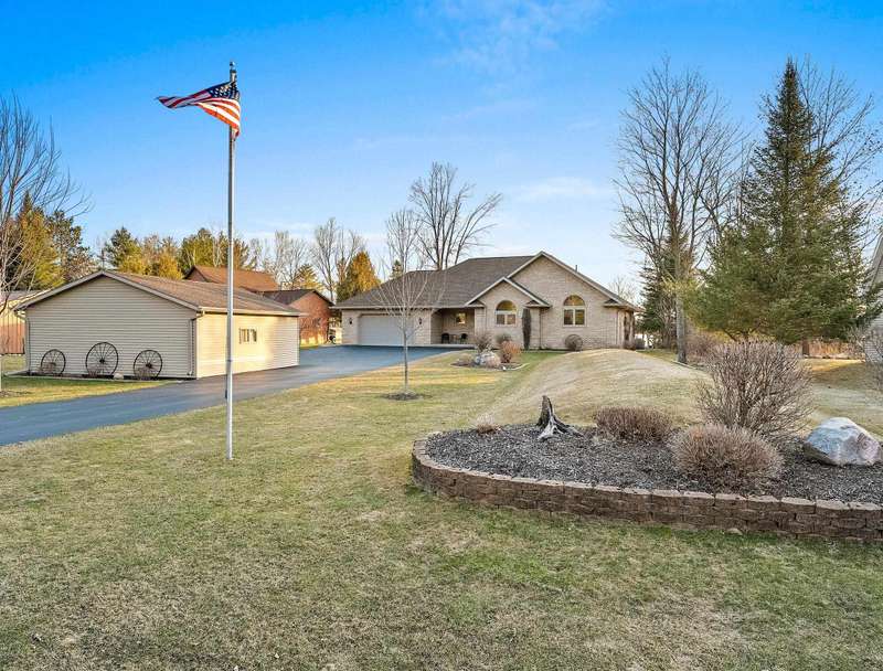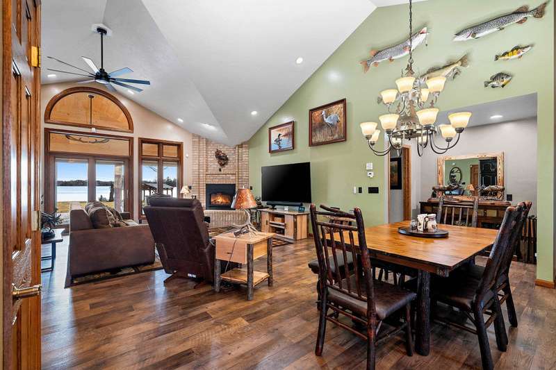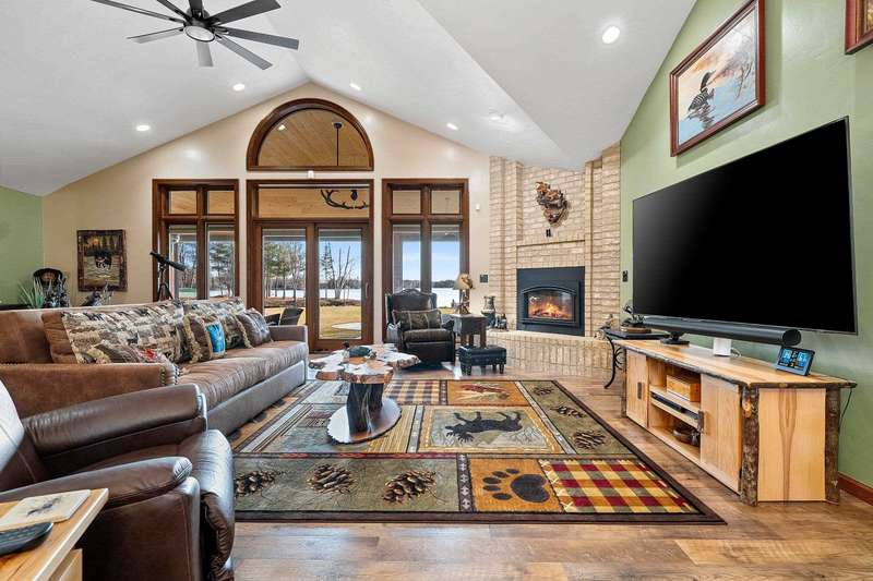 Be 1st to view this well appointed 1 of a kind brick ranch. Pristine 3 BR 2 bath home with 115' of LEVEL frontage. Home is move in ready. Features vaulted ceilings with lg windows & breathtaking views of the water. New 9X26 screened porch with gas fp. Upscale luxury kitchen. New planked flooring. Custom tile & cabinetry. Pella windows. Central vac. Newer CA & gas FA furnace. Newer roof & drilled well . Security system with cameras. 2 heated garages. Lg groomed lot with abundance of blossoming perennials & sprinkler system. Custom firepit. Access to ATV & snowmobile trails. Reservoir Pond connects to Horn Lake/Little Horn Lake & Explosion Lake by water. 2.49 acres with 60X80 pole building available with purchase of home for additional $450,000.