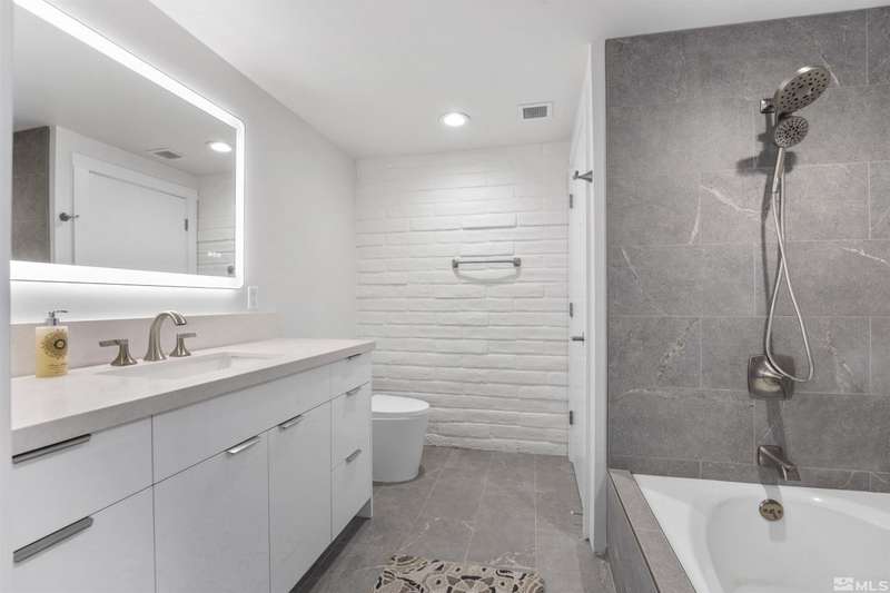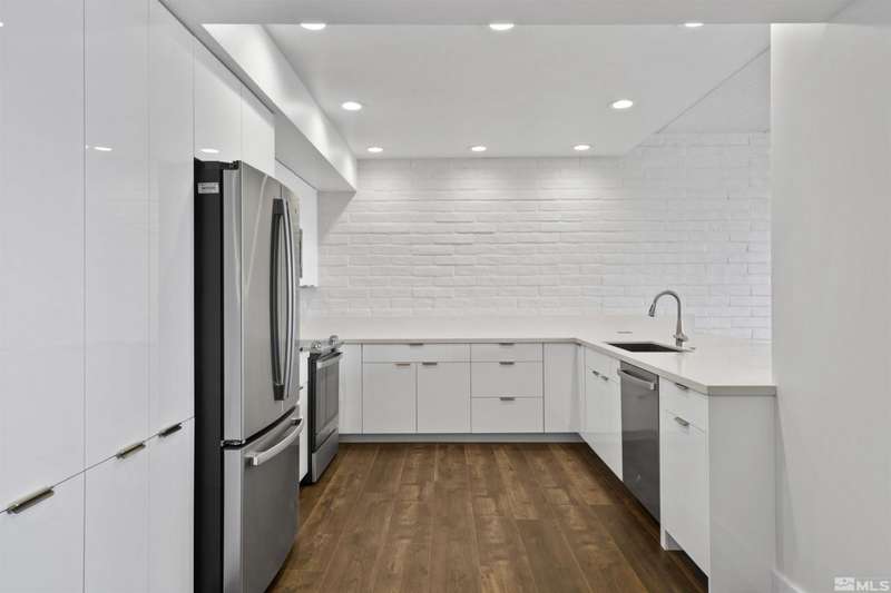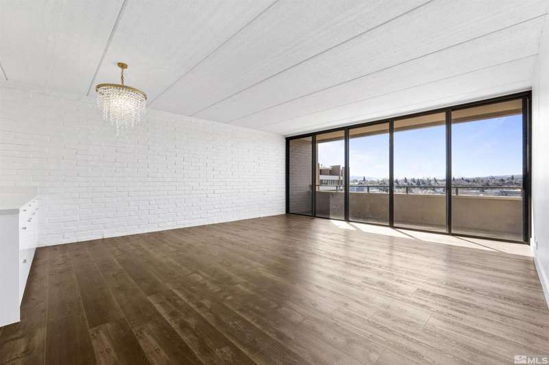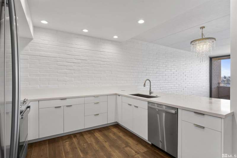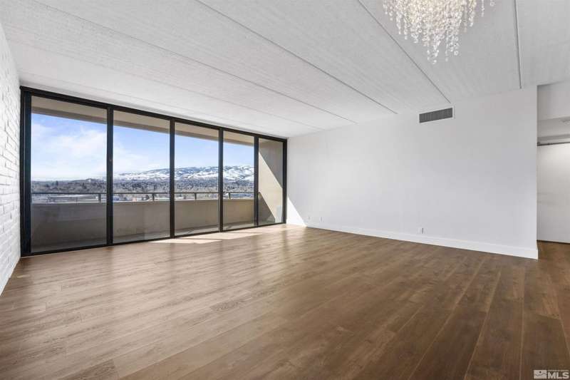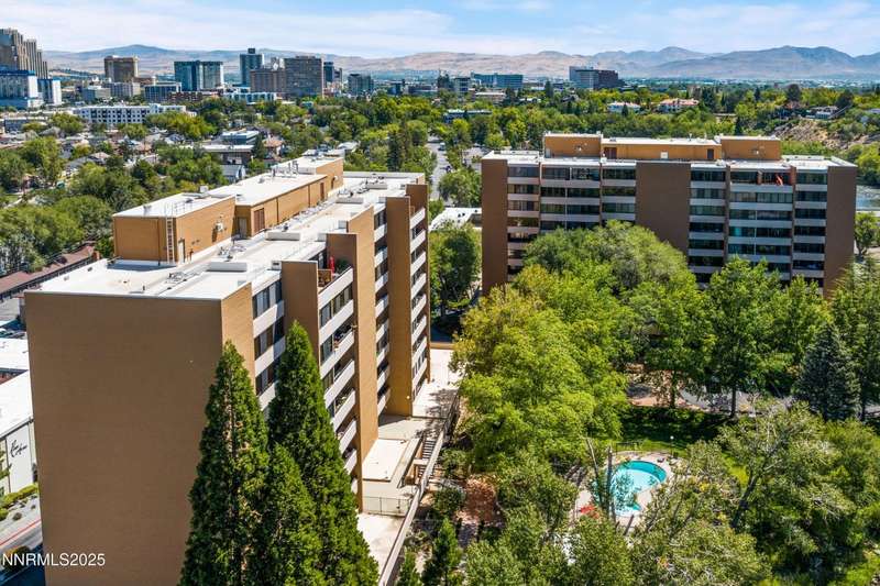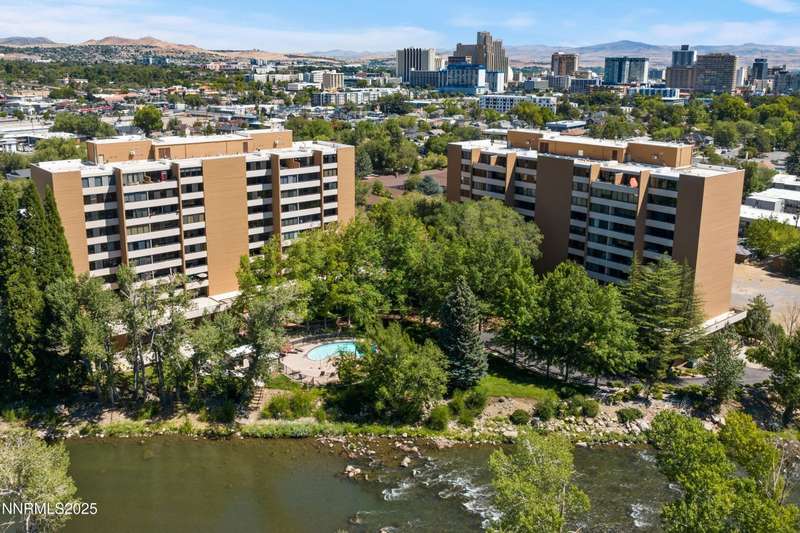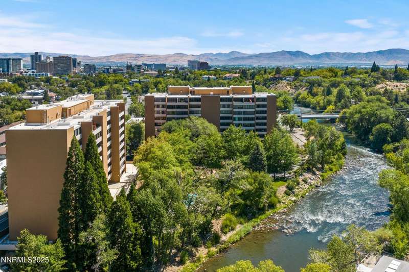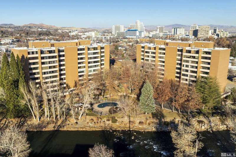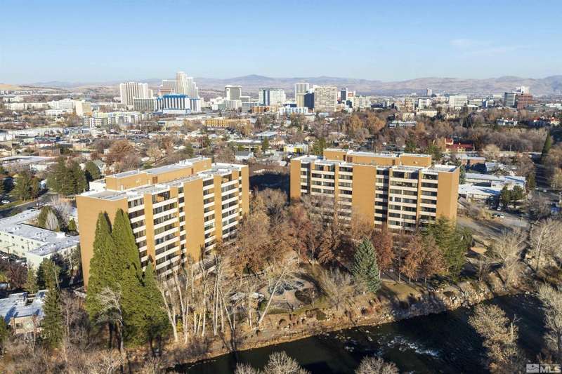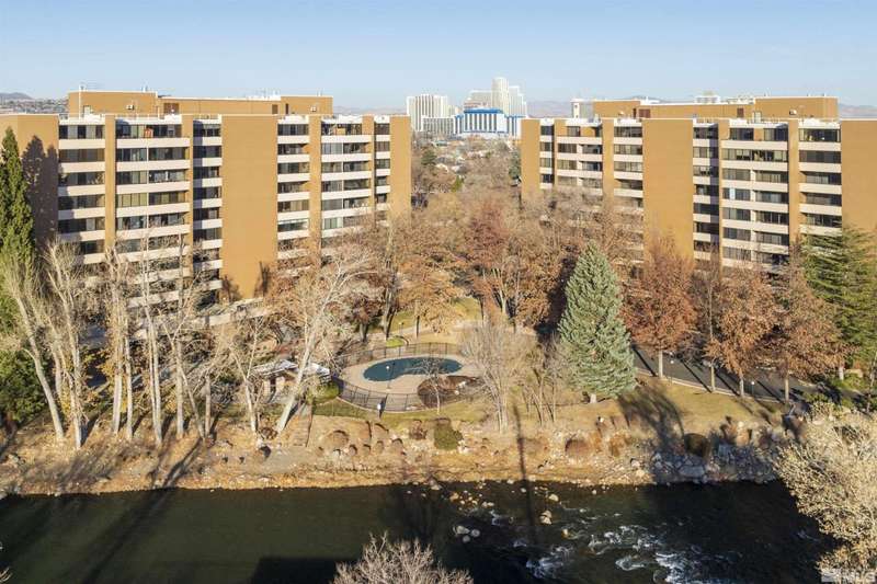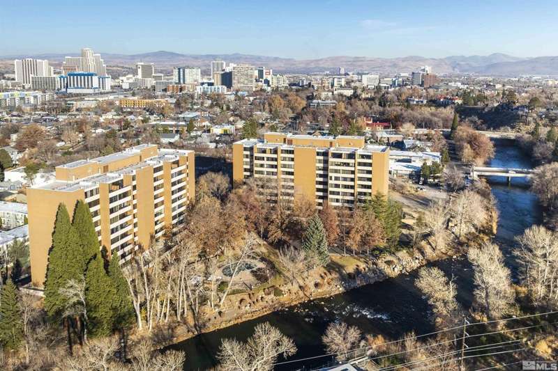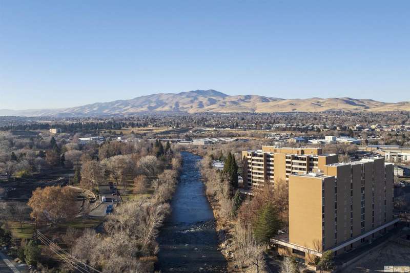 0.2 mi to Idlewild Park Truckee River & Sierra views Fully remodeled Tenth-floor condo with expansive views of the Truckee River and Sierra Nevada. This unit was fully remodeled down to the studs and includes new HVAC, electrical and plumbing, extended countertops, modern cabinetry, upgraded lighting, and open-concept layout with the soffits removed. Kitchen and living areas face west for evening light and sunset views from the covered balcony. Layout features generous living space, office space or a second bedroom, extra storage, and in-unit washer/dryer. Perfectly smooth textured walls and new luxury vinyl plank flooring throughout. HOA amenities include heating and A/C, water and garbage, a pool, clubhouse with gym, BBQ area, gated covered parking, secure garage, elevators, 24-hour security and lush landscaping. Located directly along the river and within blocks of downtown dining, shops, and farmer's markets.
