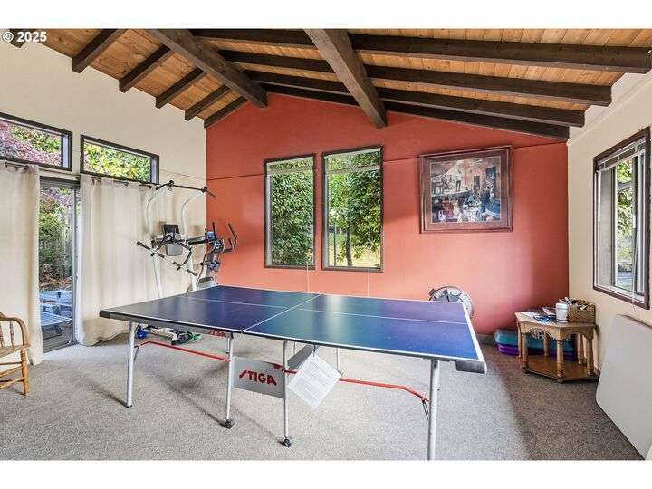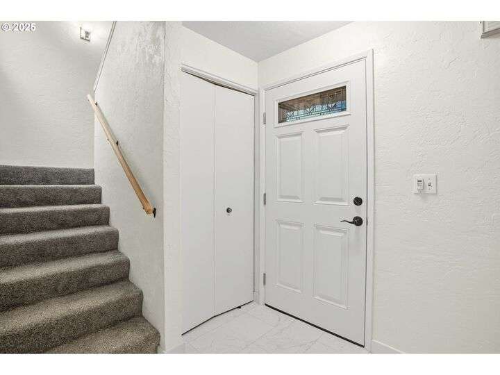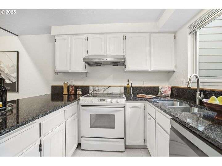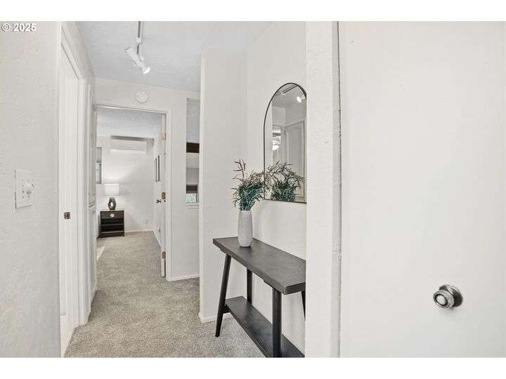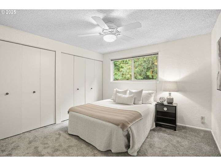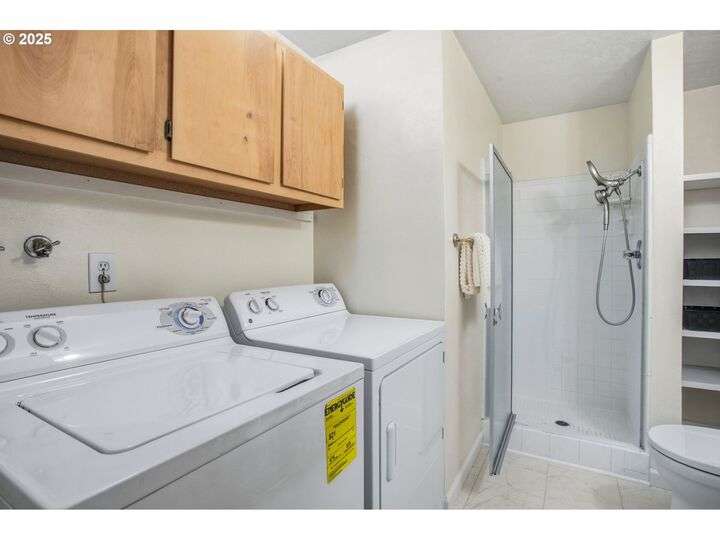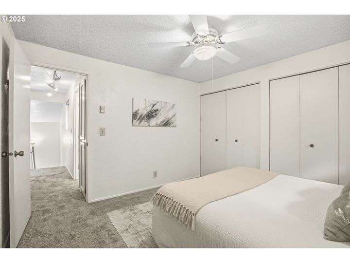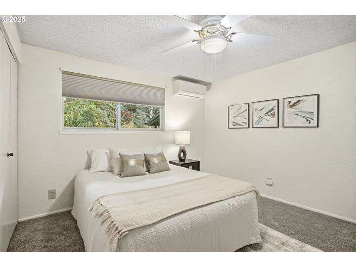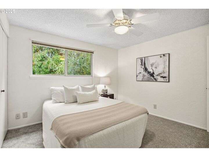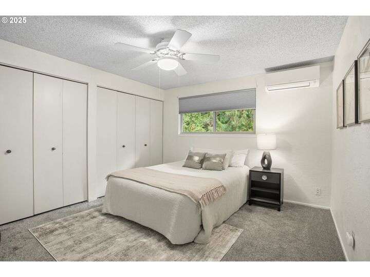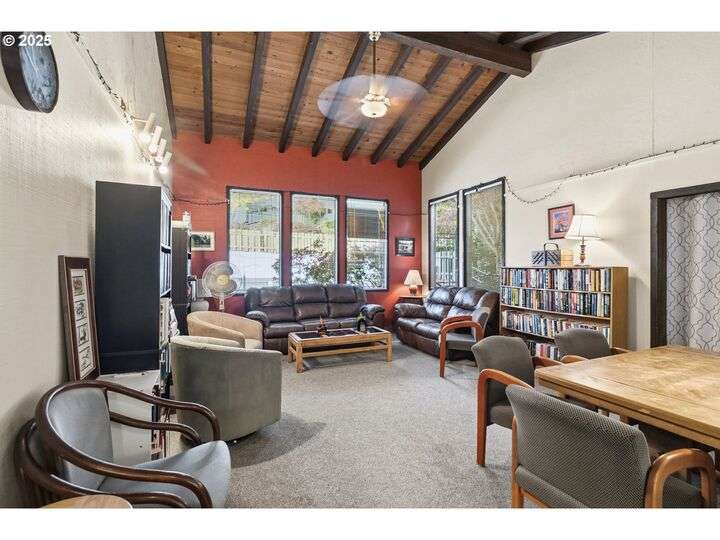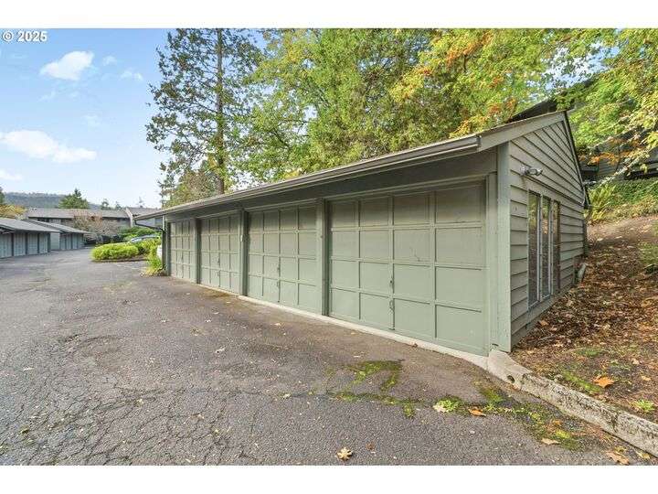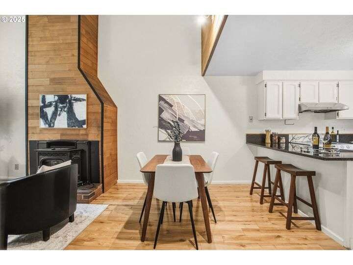 Lovely updated Townhome in Wild Oaks community with main level primary bedroom, close to running trails, bus route and parks. This home features vaulted ceilings, pellet stove, new carpets and interior paint, granite counters in the kitchen with a breakfast bar, dining area in the great room, two bedrooms and bath upstairs for great separation of space, and ductless heat pump for heating and cooling. Private deck with views of trees and common area, and detached one-car garage and designated parking space, #15. The Wild Oaks HOA has a community building with club room, workout room, sauna and outdoor swimming pool. HOA dues are $435/month and includes exterior maintenance and common areas.