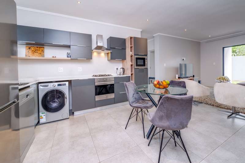 Discover modern living in this stunning 2-bedroom, 2-bathroom garden unit nestled in the heart of Bryanston. This luxurious apartment boasts an open-plan kitchen featuring premium Smeg gas stove, extractor fan, space for two appliances and the sleek Quartz counter tops. The spacious living dining/lounge area that opens onto a covered patio, overlooking a beautifully manicured wrap-around garden. The seamless flow continues into the light-filled bedrooms, both with vinyl flooring and ample cupboard space. The main bedroom features a modern en-suite bathroom with a rain shower, while the second bedroom is conveniently located next to a stylish bathroom. Set in a secure complex offering concierge security and a lovely outdoor gym, this home provides peace of mind and a healthy lifestyle. It is perfectly situated close to Bryanston shopping centers, top amenities, and provides easy access to major routes. Don’t miss out on this prime property! Contact us for a viewing today.