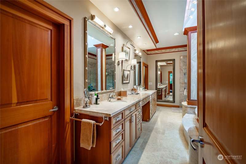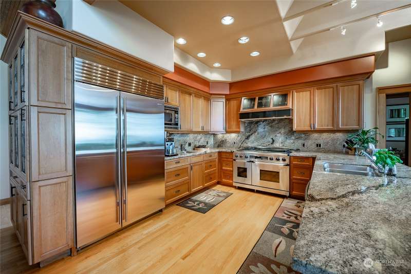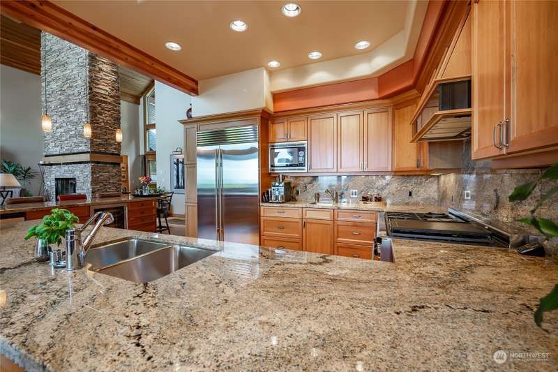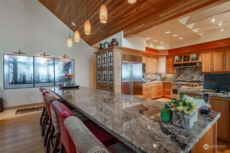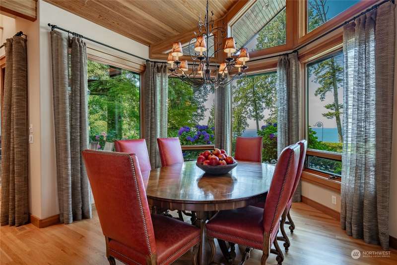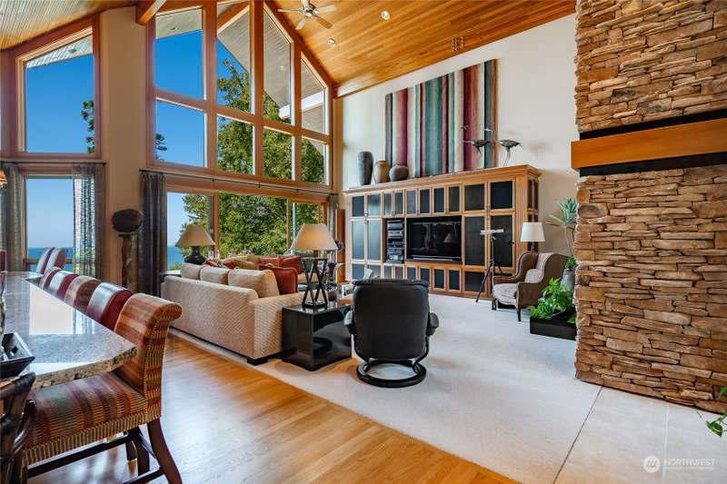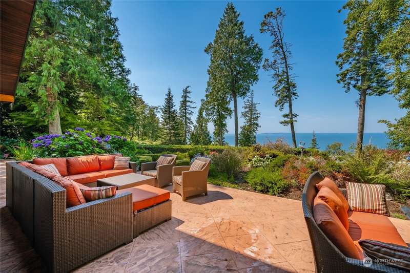 This stunning 3,952sf home offers 4 beds, 4.5 baths & 104ft waterfront on a secluded 1.13-acre lot in Semiahmoo. The westerly-facing views and premium outdoor living areas with rare privacy barriers make this one-of-a-kind. Garage is fully finished w/tiled floor, cabinets & 1200sf 3-bay car space. Enjoy elegant ceramic tile and hardwood floors, vaulted ceilings, a stoned-in fireplace, waterfront view office & gorgeous entertainment areas. The property includes beach rights, heat pump for efficient climate control, and gated entry for added privacy. Located just minutes from the award-winning Semiahmoo Golf Course, Spa, Workout Center & Marina. Experience luxurious waterfront living at its finest!